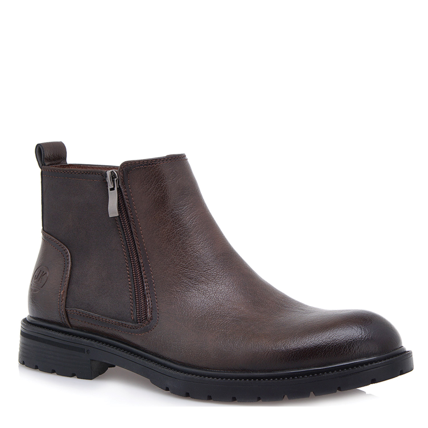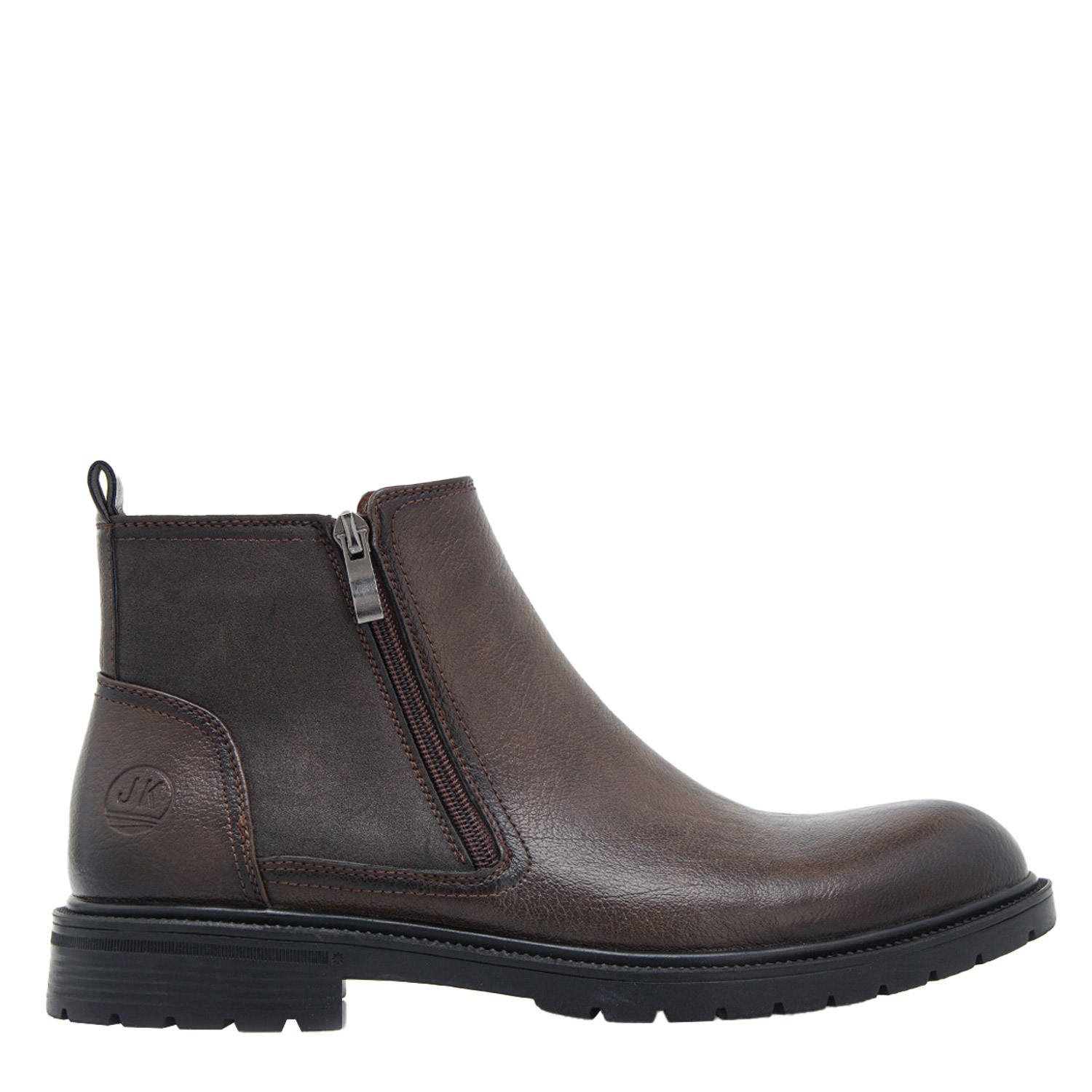 JK London ανδρικό μποτάκι, σε καφέ χρώμα, κατασκευασμένο από οικολογικό δέρμα. Ύψος σόλας 3εκ.