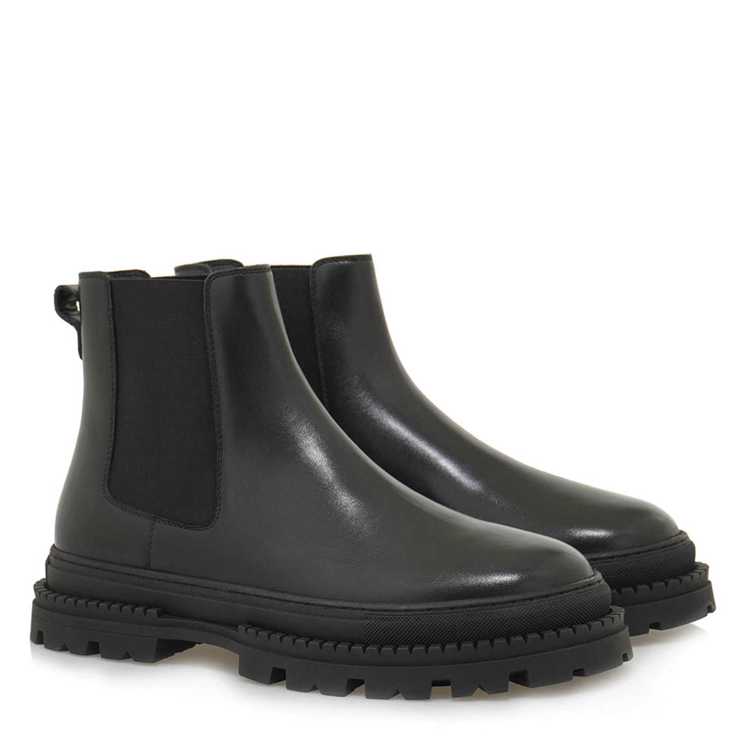 Renato Garini ανδρικό μποτάκι, σε μαύρο χρώμα, κατασκευασμένο από δέρμα. Ύψος σόλας 5εκ.