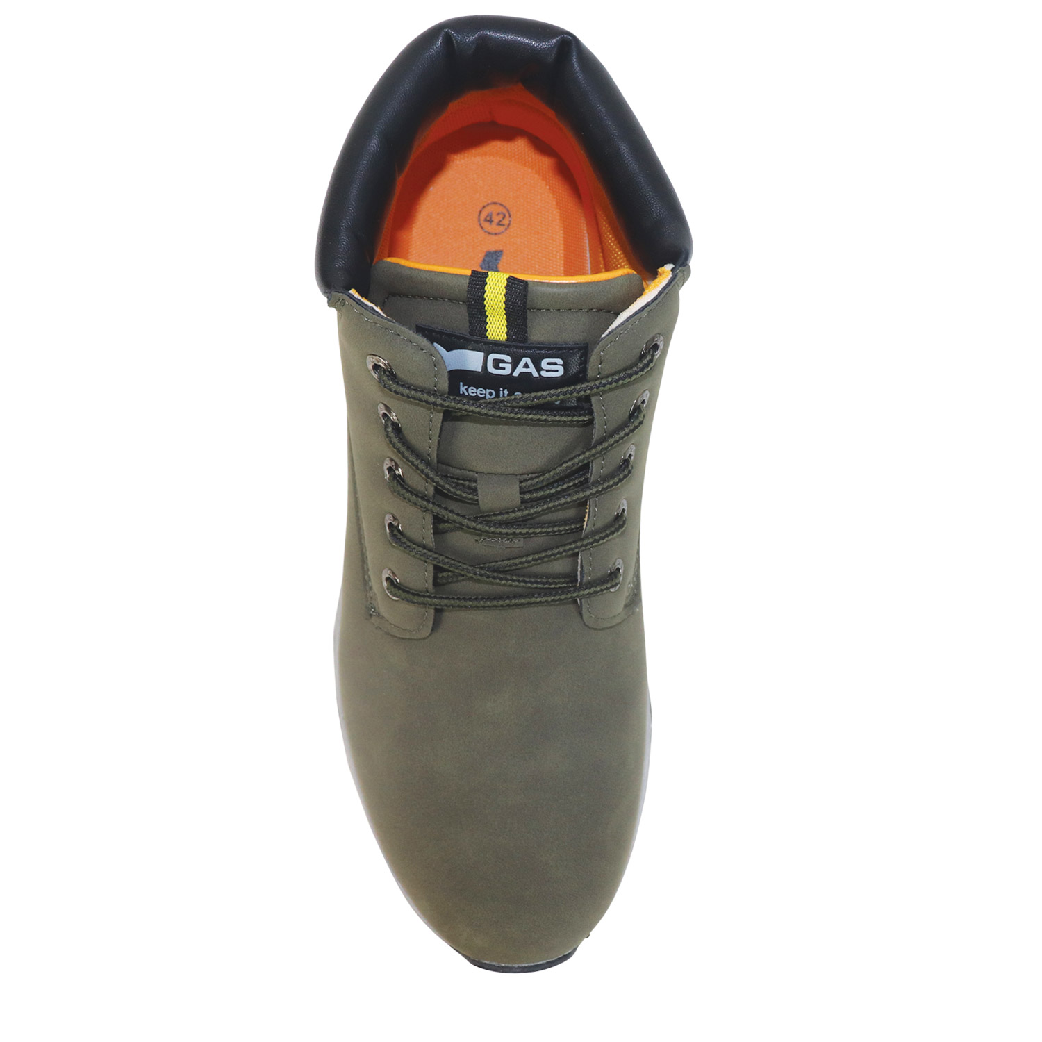 Gas ανδρικό μποτάκι, σε χακί χρώμα, κατασκευασμένο από οικολογικό δέρμα. Ύψος σόλας 4εκ.