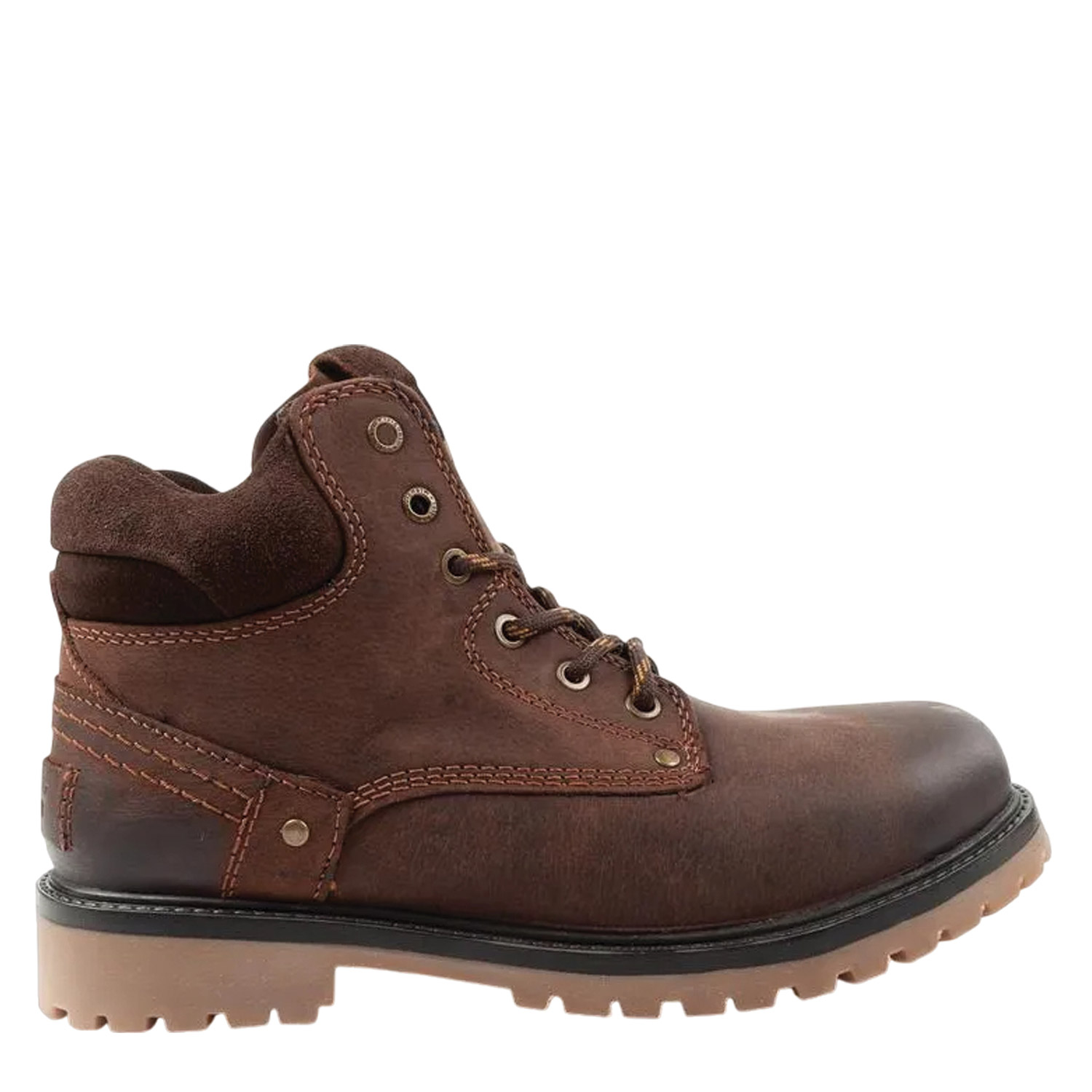 Wrangler ανδρικό μποτάκι, σε καφέ χρώμα, κατασκευασμένο από δέρμα, με ανατομικό πάτο για άνεση στο περπάτημα.