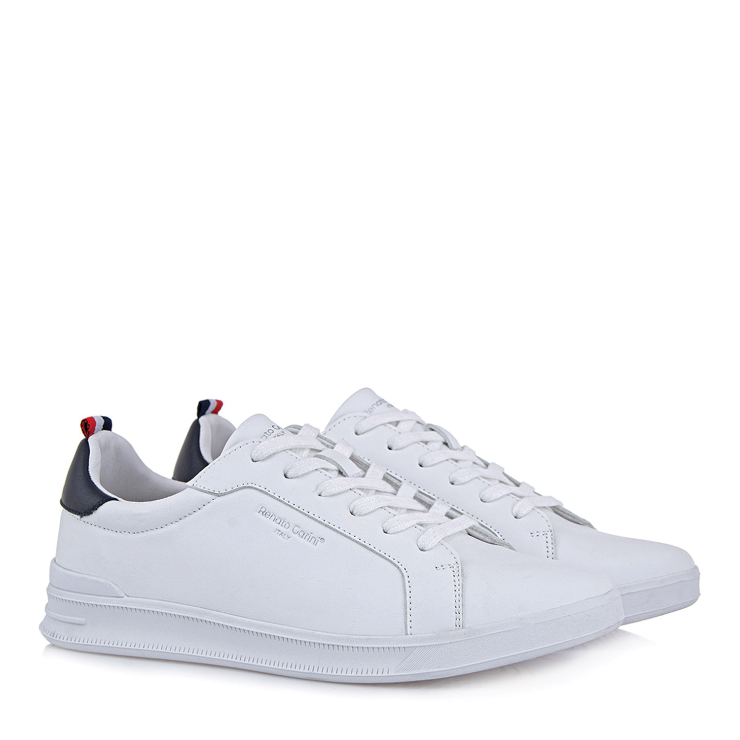Renato Garini ανδρικό sneaker, σε λευκό χρώμα, κατασκευασμένο από οικολογικό δέρμα. Ύψος σόλας 2εκ.
