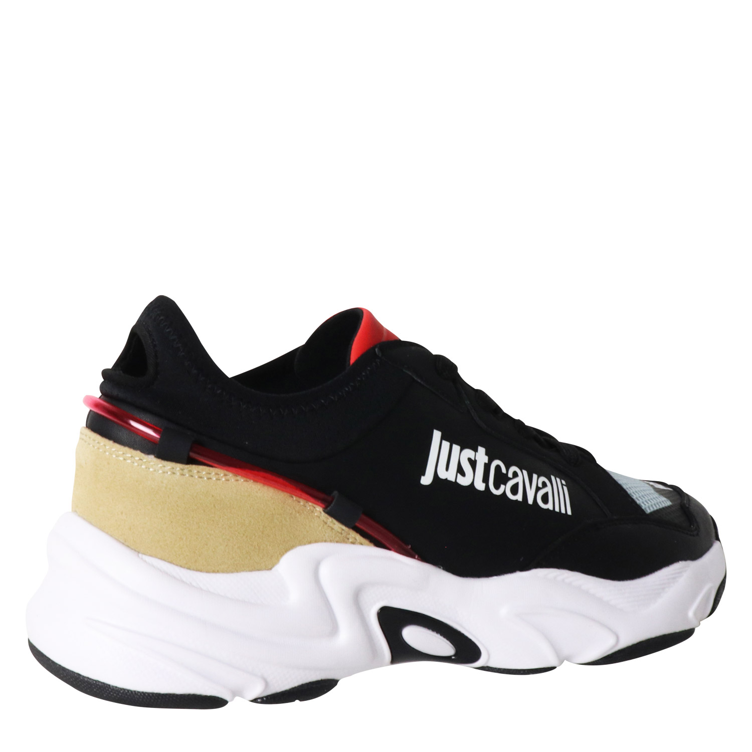 Just Cavalli ανδρικό sneaker, σε μαύρο χρώμα, κατασκευασμένο από δέρμα, ύφασμα και καστόρι.