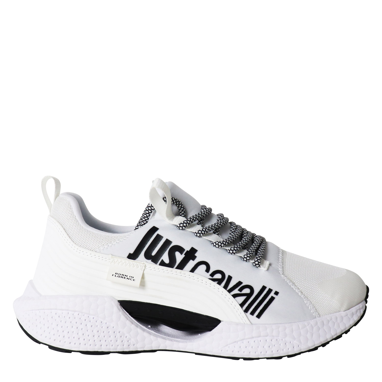 Just Cavalli ανδρικό sneaker, σε λευκό χρώμα, κατασκευασμένο από ύφασμα με λεπτομέρειες δέρματος. Ύψος σόλας 3εκ.