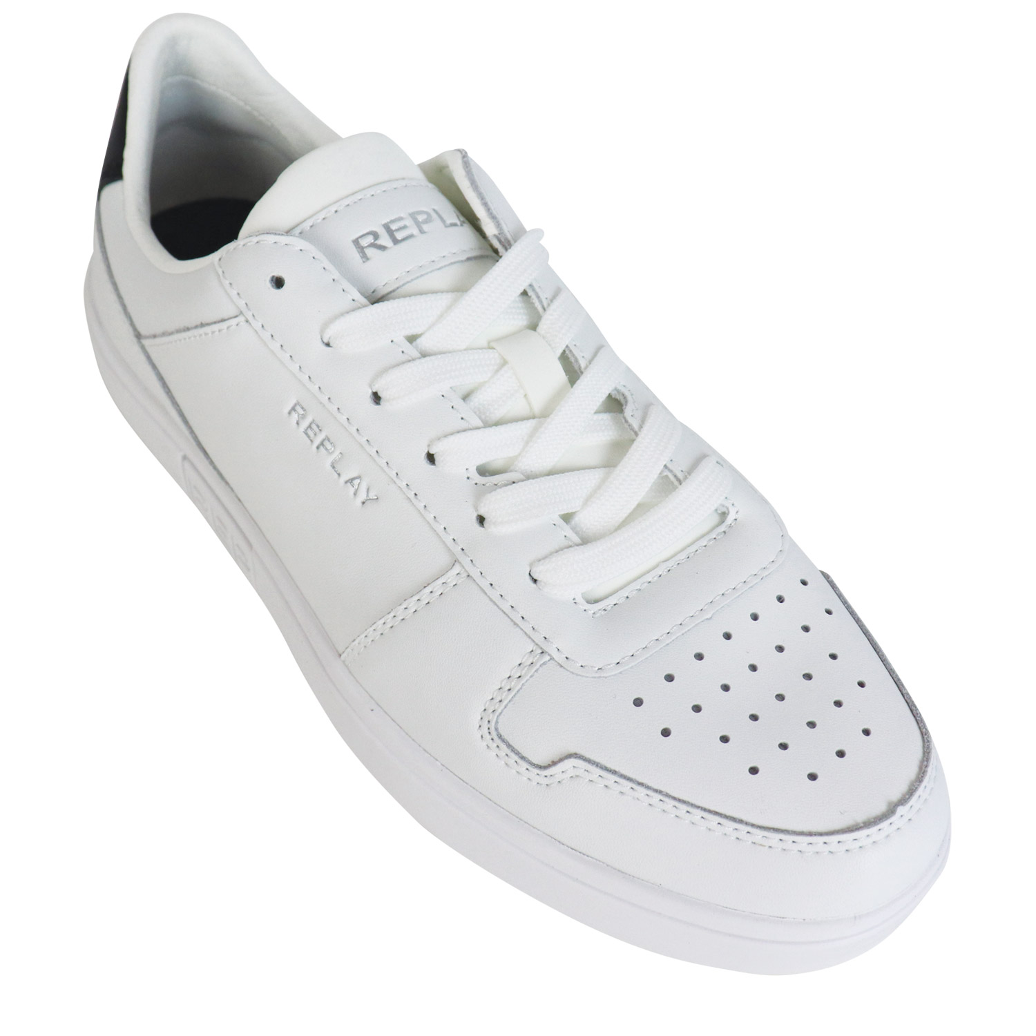 Replay ανδρικό sneaker, σε λευκό χρώμα, κατασκευασμένο από δέρμα. Ύψος σόλας 2.5εκ.