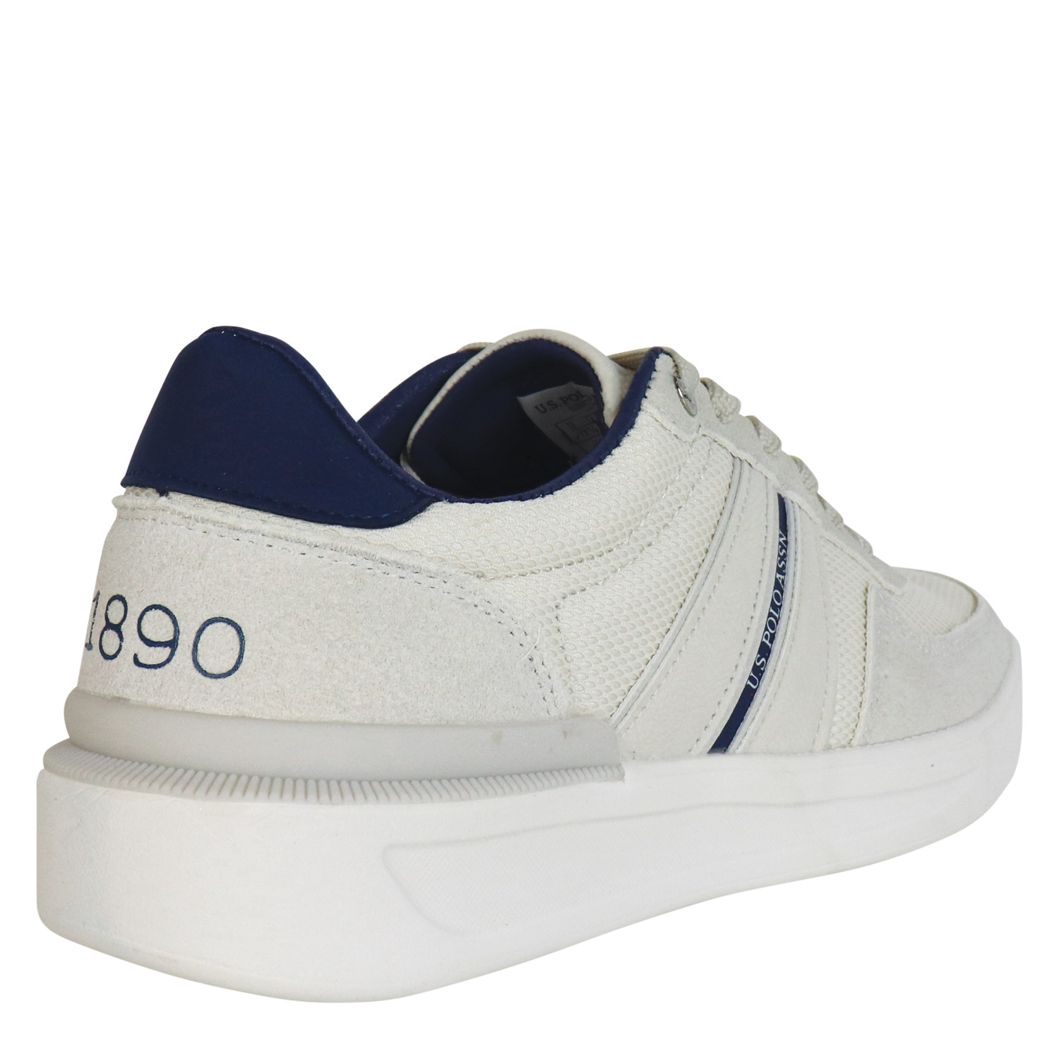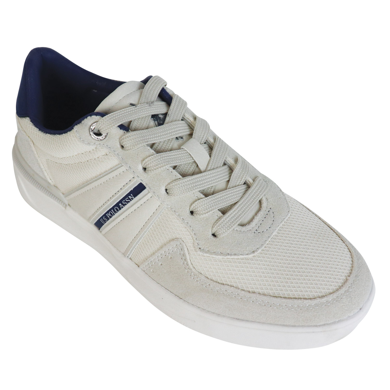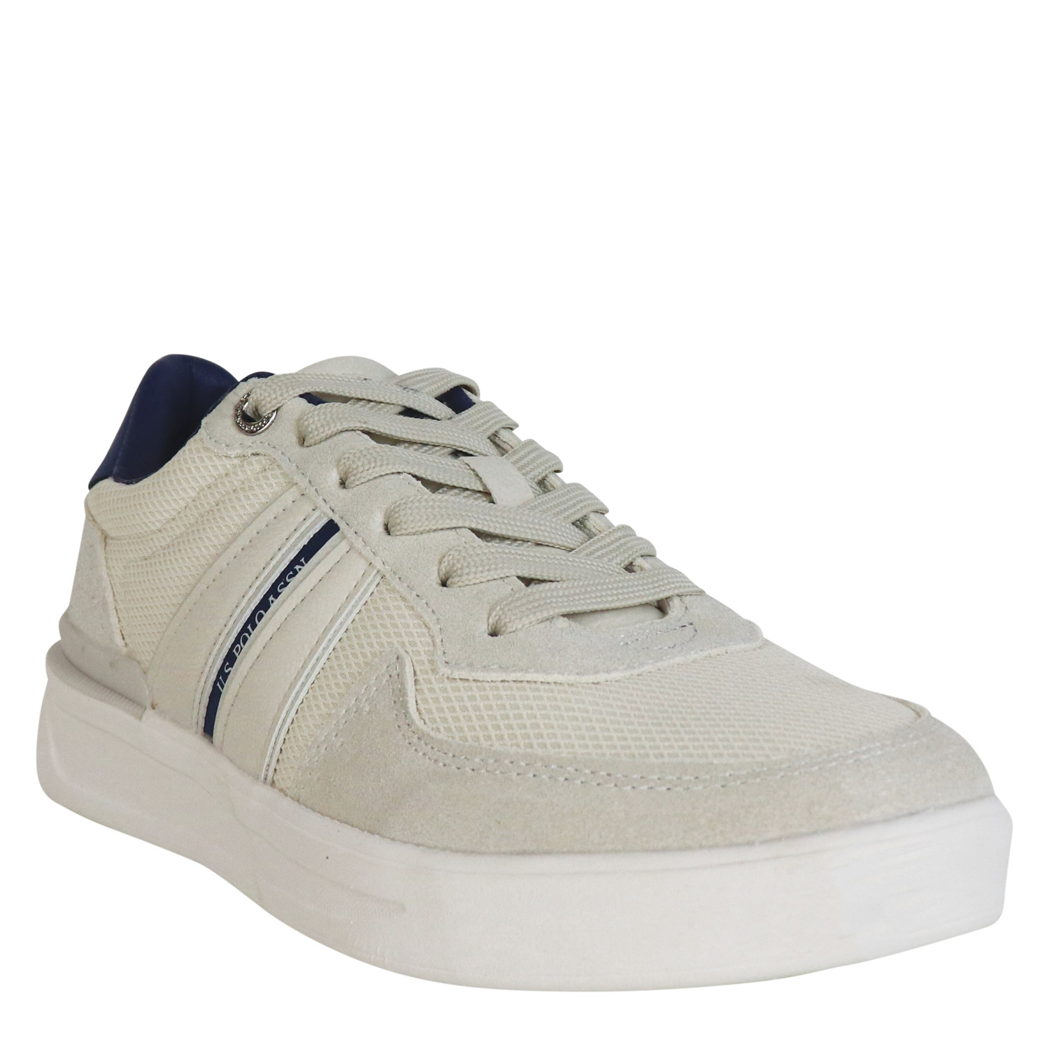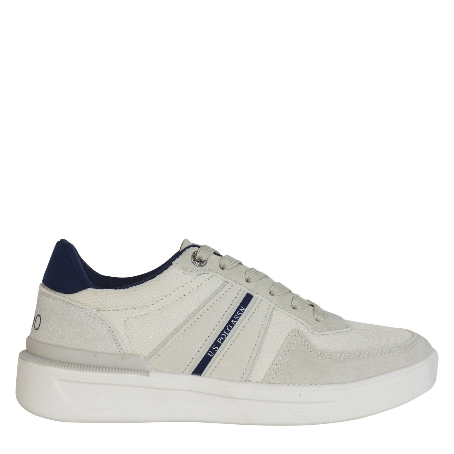 U.S. Polo ASSN ανδρικό sneaker, σε εκρού χρώμα, κατασκευασμένο από ύφασμα και οικολογικό δέρμα. Ύψος σόλας 3εκ.