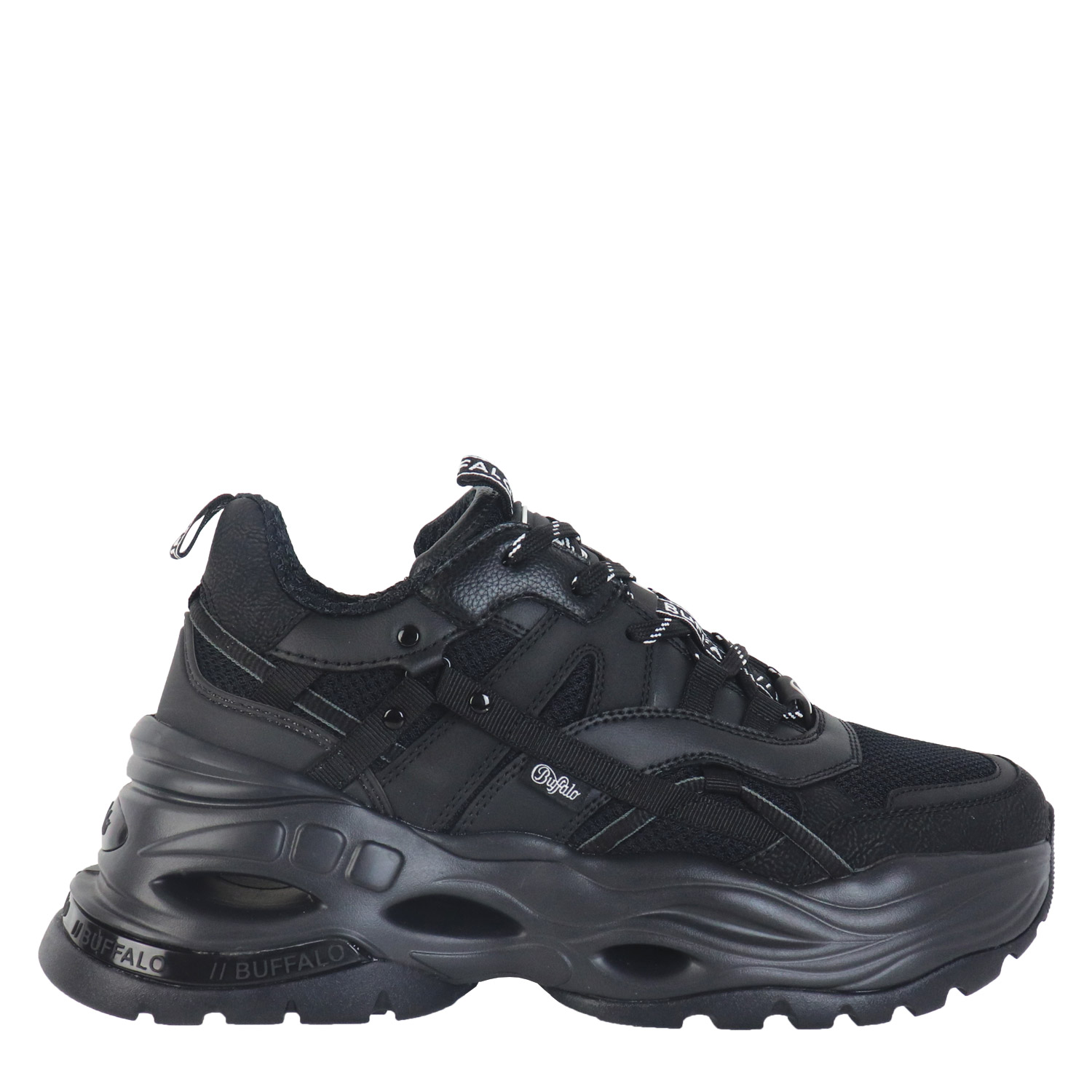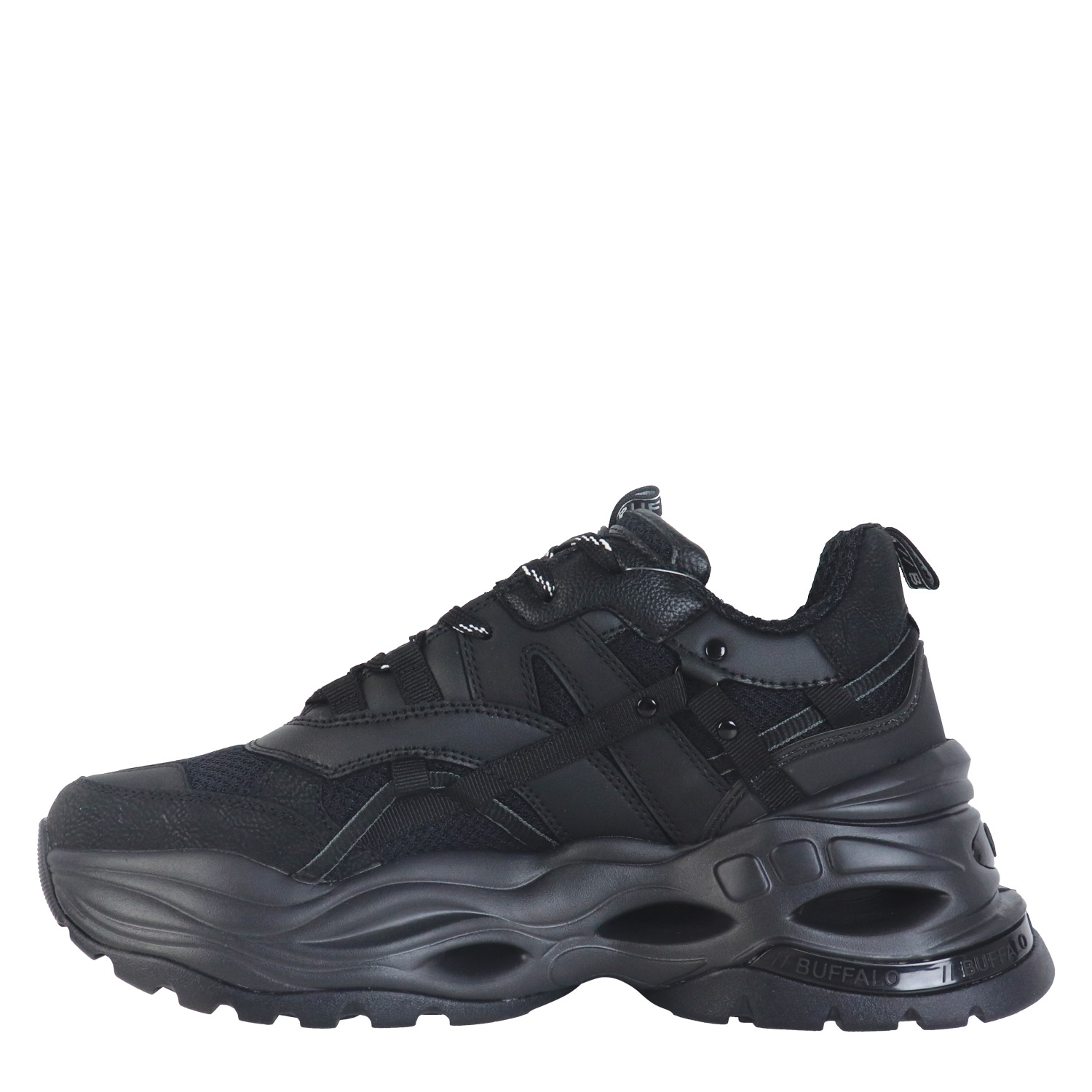 Buffalo ανδρικό sneaker, σε μαύρο χρώμα, κατασκευασμένο από οικολογικό δέρμα και ύφασμα. Ύψος σόλας 8εκ.