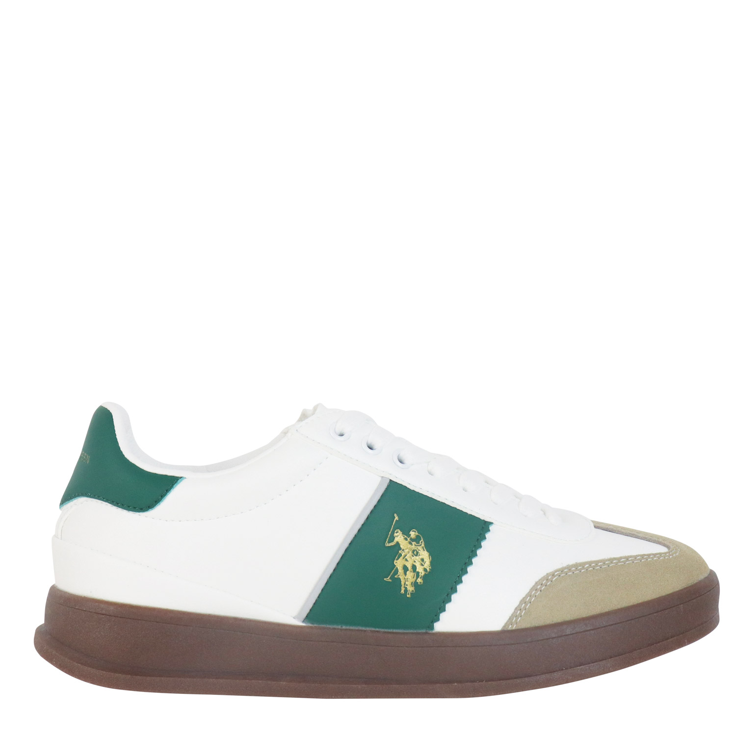 U.S. Polo ASSN ανδρικό sneaker, σε πράσινο-λευκό χρώμα, κατασκευασμένο από οικολογικό δέρμα. Ύψος σόλας 3,5εκ.