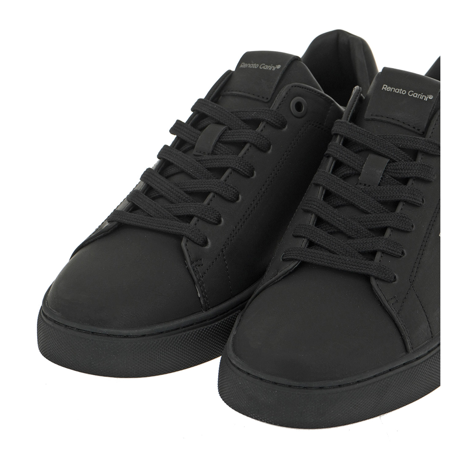 Renato Garini ανδρικό sneaker, σε μαύρο χρώμα, κατασκευασμένο από οικολογικό δέρμα. Ύψος σόλας 3εκ.