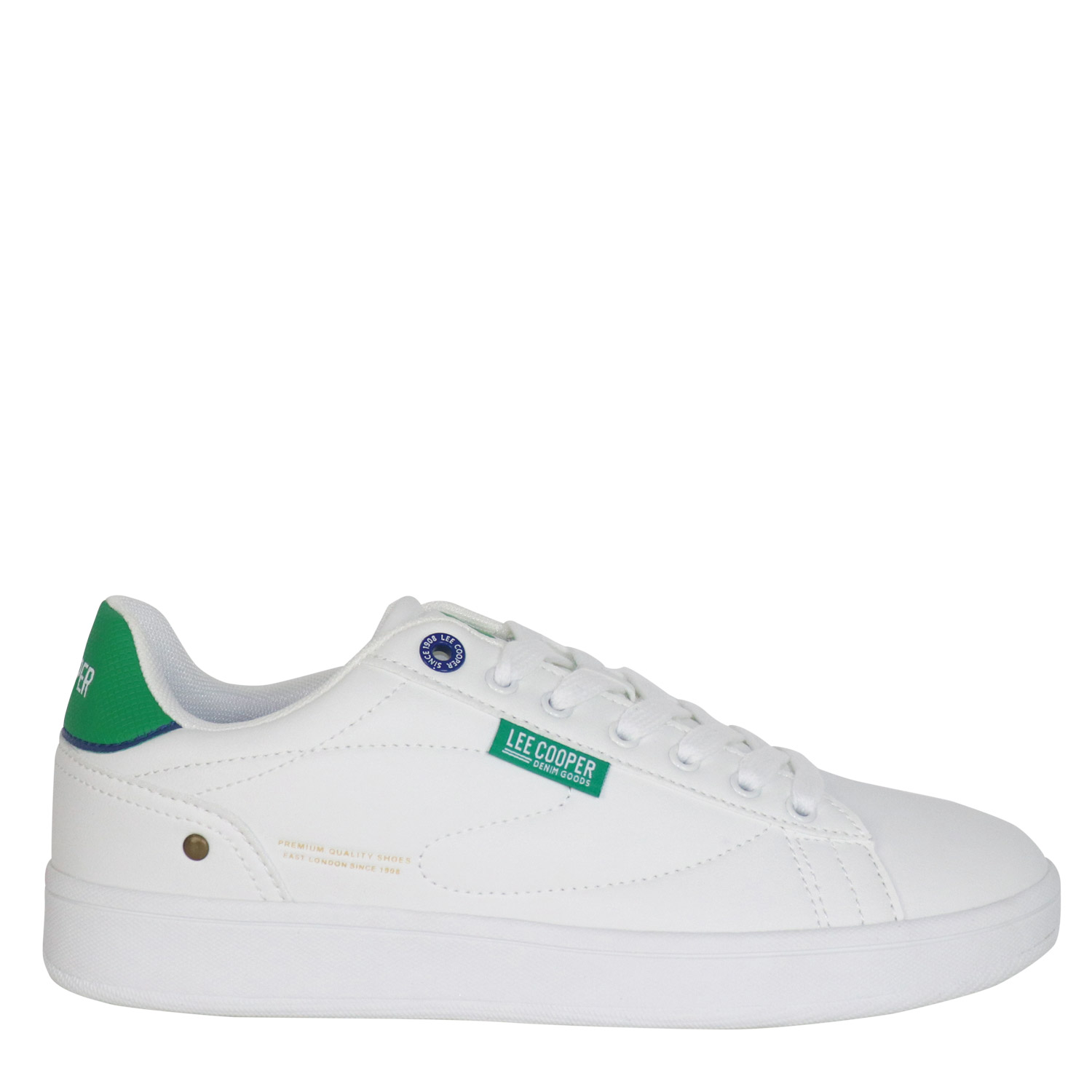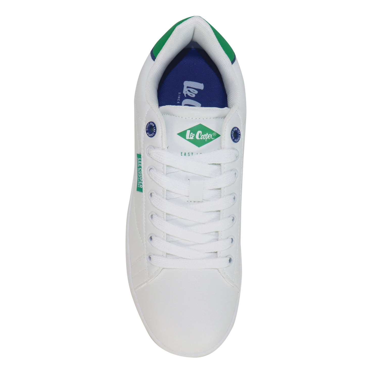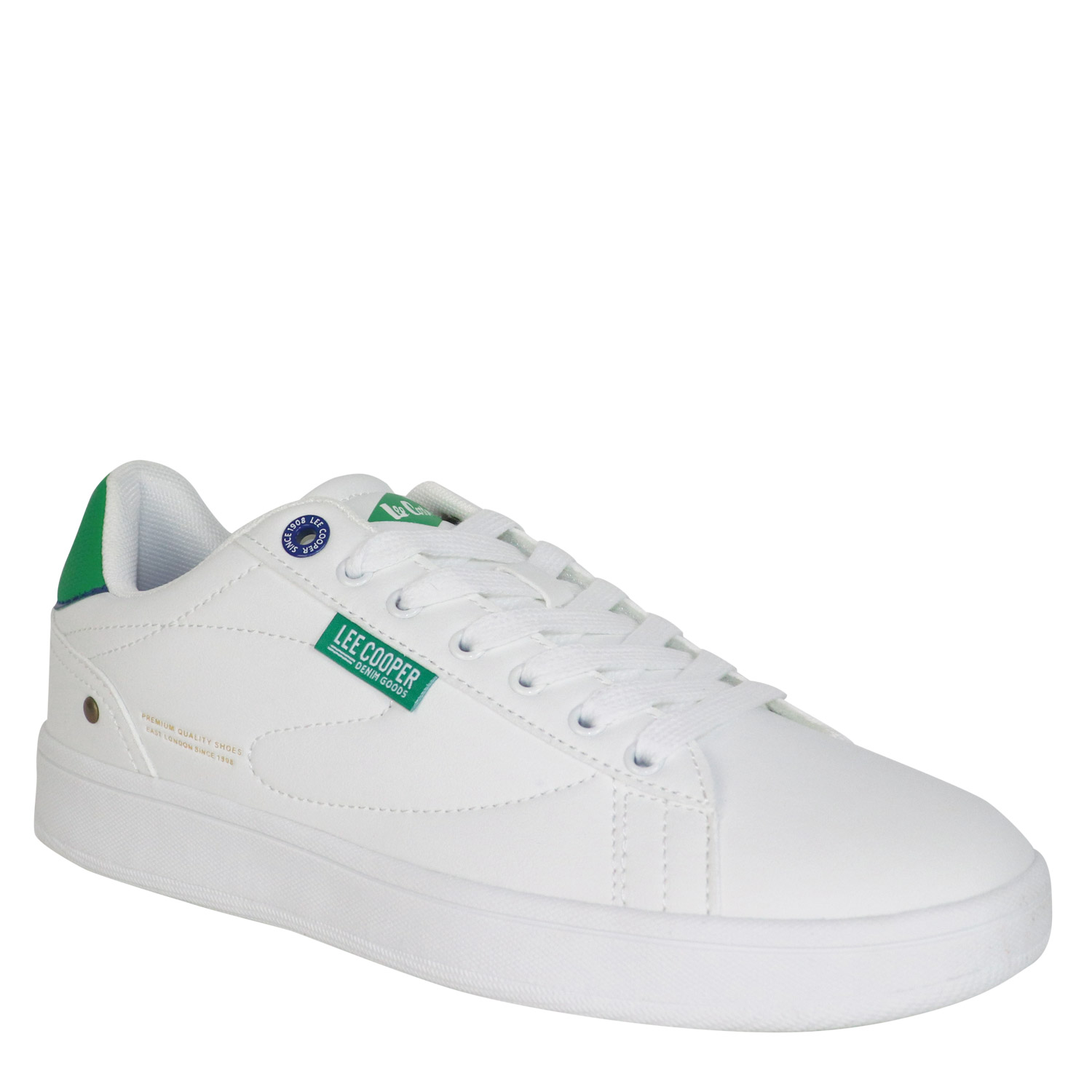 Lee Cooper ανδρικό sneaker σε λευκό με πράσινο χρώμα κατασκευασμένο από οικολογικό δέρμα. Ύψος σόλας 2.5εκ.