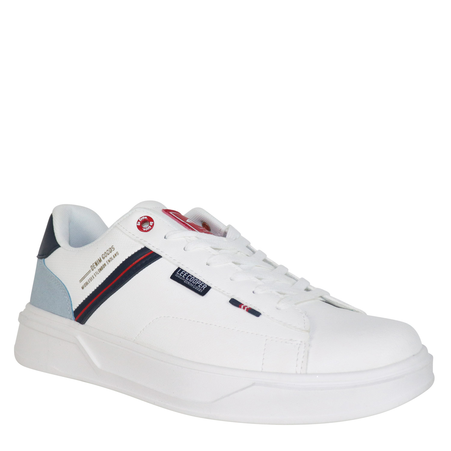 Lee Cooper ανδρικό sneaker σε λευκό χρώμα κατασκευασμένο από οικολογικό δέρμα. Ύψος σόλας 3εκ.