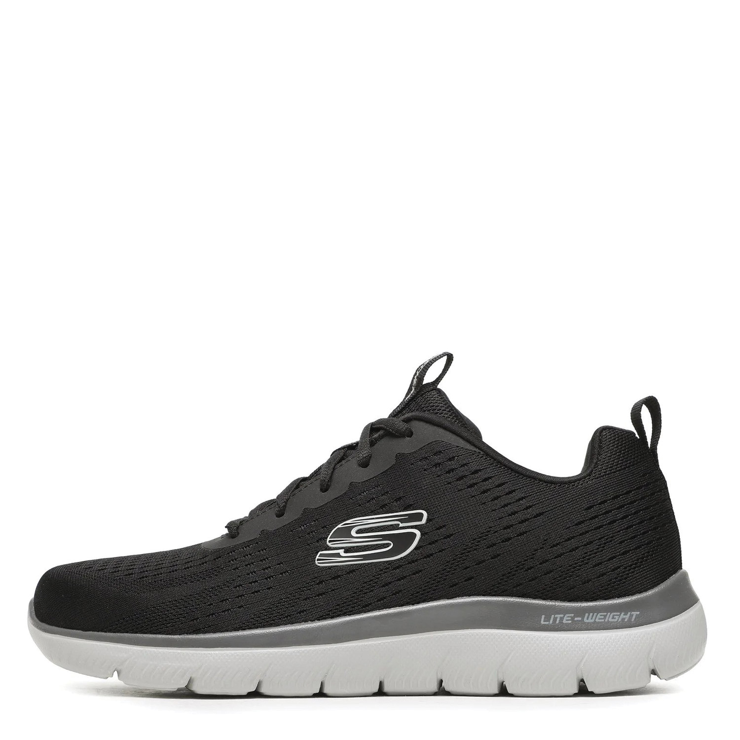 Skechers ανδρικό sneaker, σε μαύρο χρώμα, κατασκευασμένο από ύφασμα με ανατομικό πατάκι. Ύψος σόλας 3εκ.