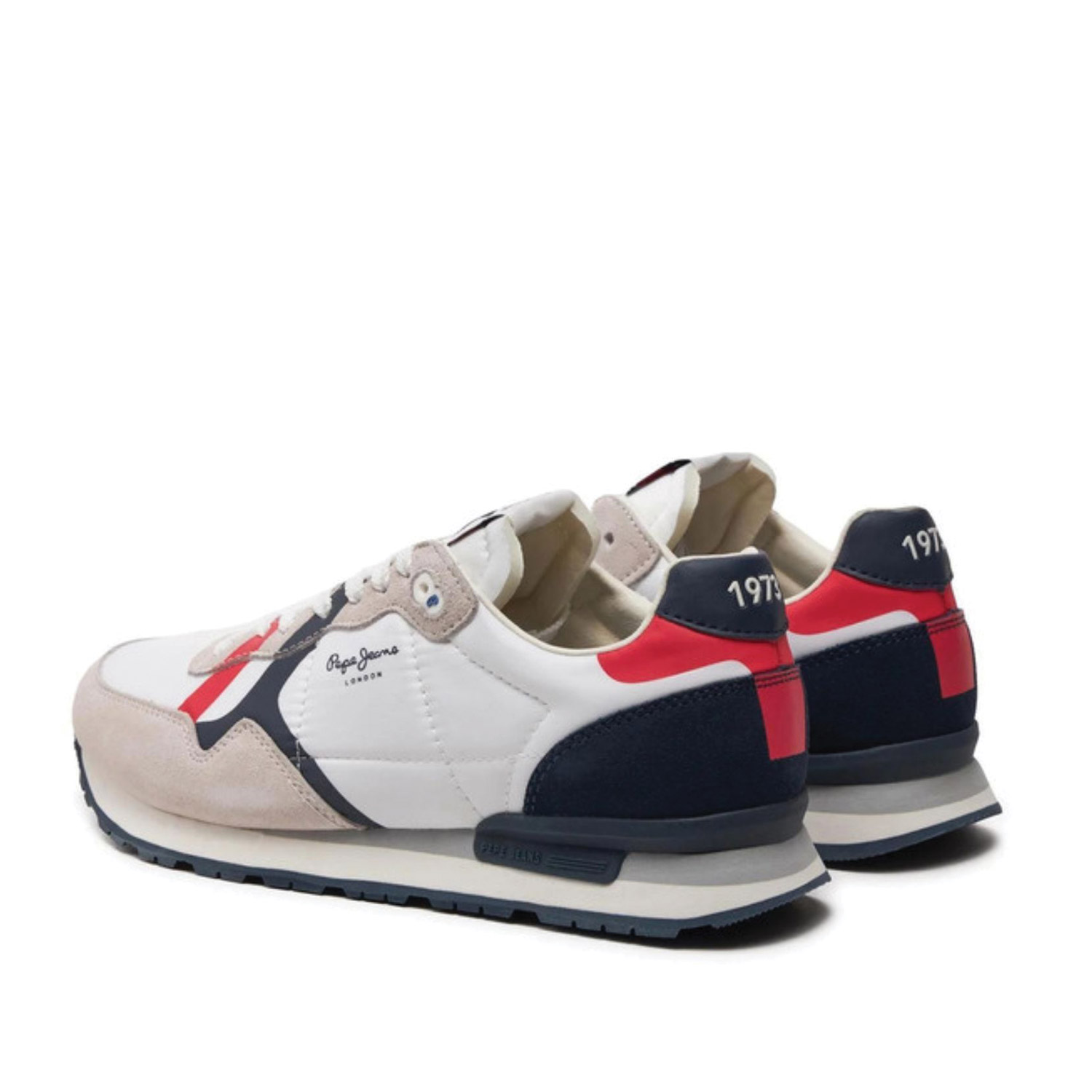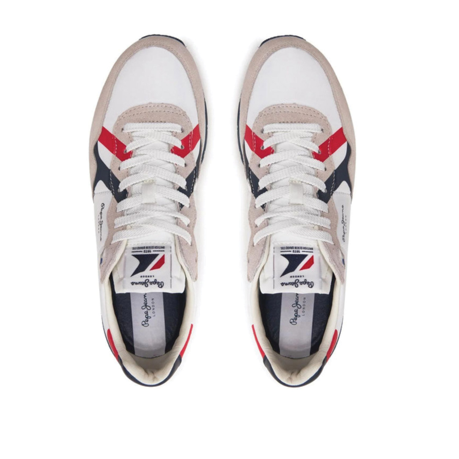Pepe Jeans ανδρικό sneaker, σε λευκό χρώμα, κατασκευασμένο από ύφασμα και δέρμα καστόρι. Ύψος σόλας 3.5εκ.