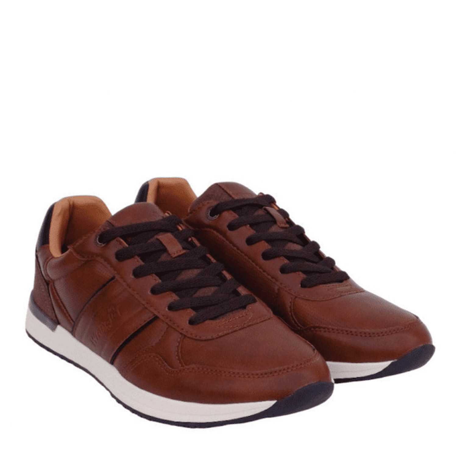 Ανδρικά sneakers της Wrangler σε κομψό ταμπά χρώμα με διακριτικές ραφές και το logo στο πλάι. Συνδυάζουν μοντέρνα εμφάνιση με άνεση, χάρη στην ενισχυμένη σόλα και τα ποιοτικά υλικά κατασκευής. Ιδανικά για καθημερινές casual εμφανίσεις αλλά και για πιο προσεγμένα outfits.