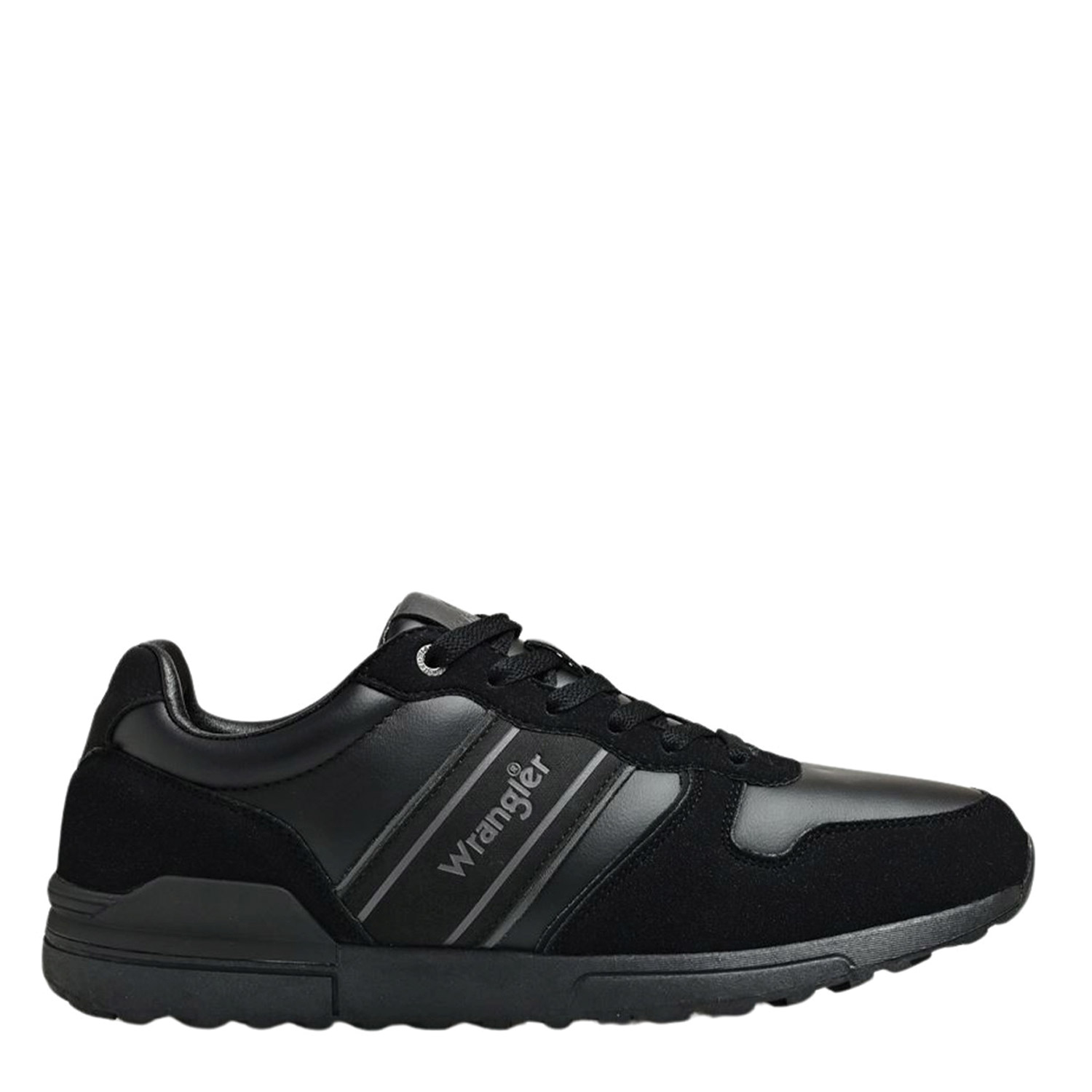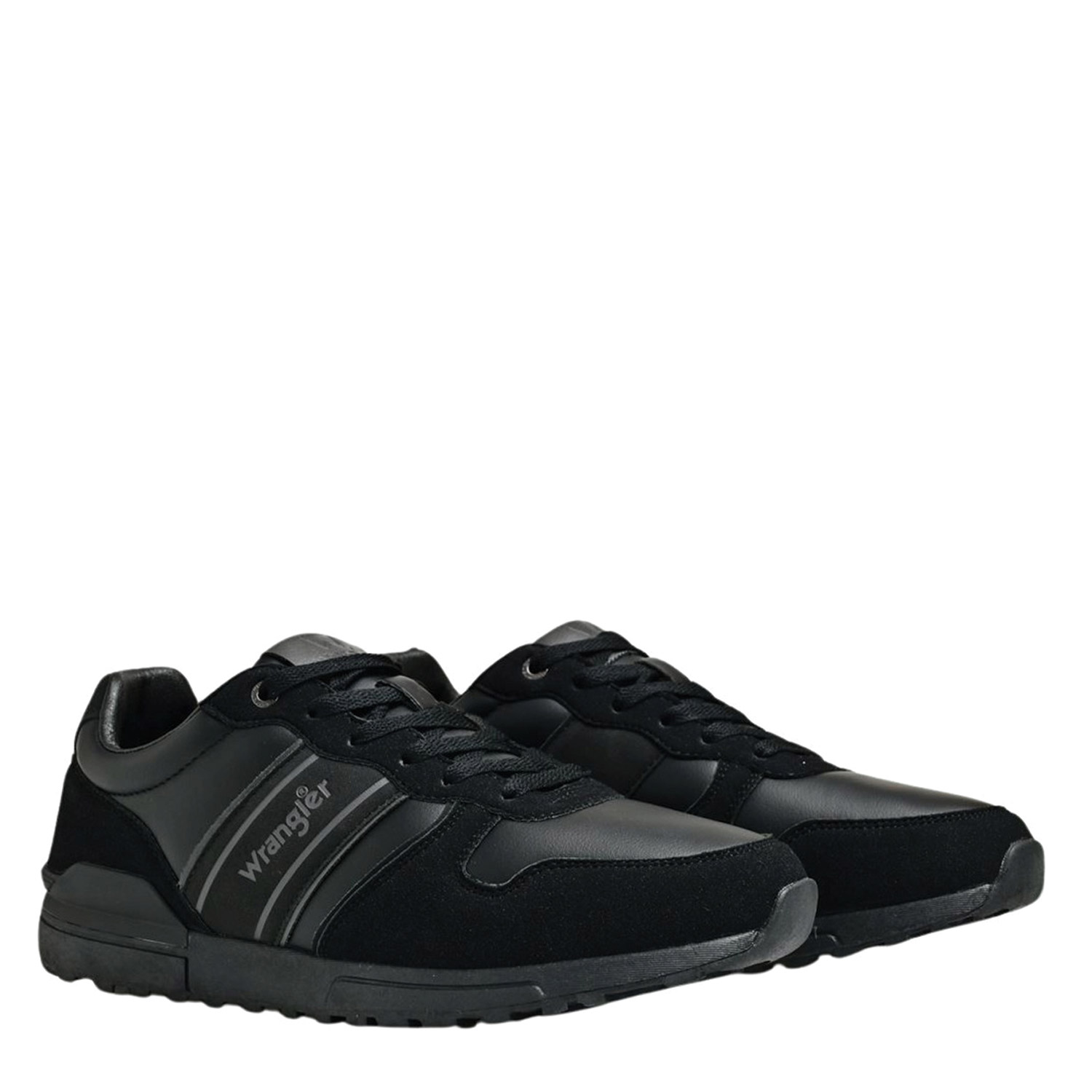Ανδρικά sneakers της Wrangler σε κομψό μαύρο χρώμα με διακριτικές ραφές και το logo στο πλάι. Συνδυάζουν μοντέρνα εμφάνιση με άνεση, χάρη στην ενισχυμένη σόλα και τα ποιοτικά υλικά κατασκευής. Ιδανικά για καθημερινές casual εμφανίσεις αλλά και για πιο προσεγμένα outfits.