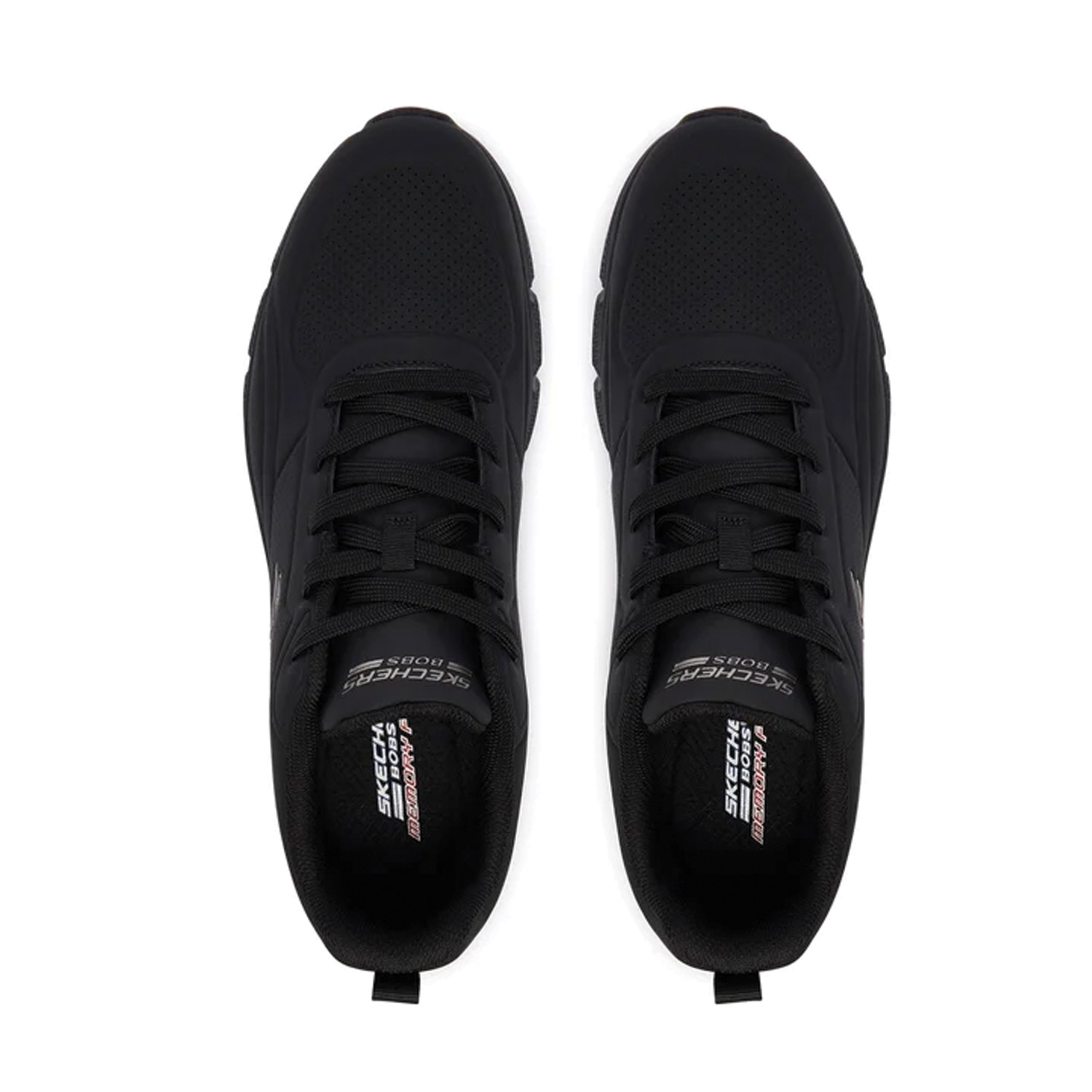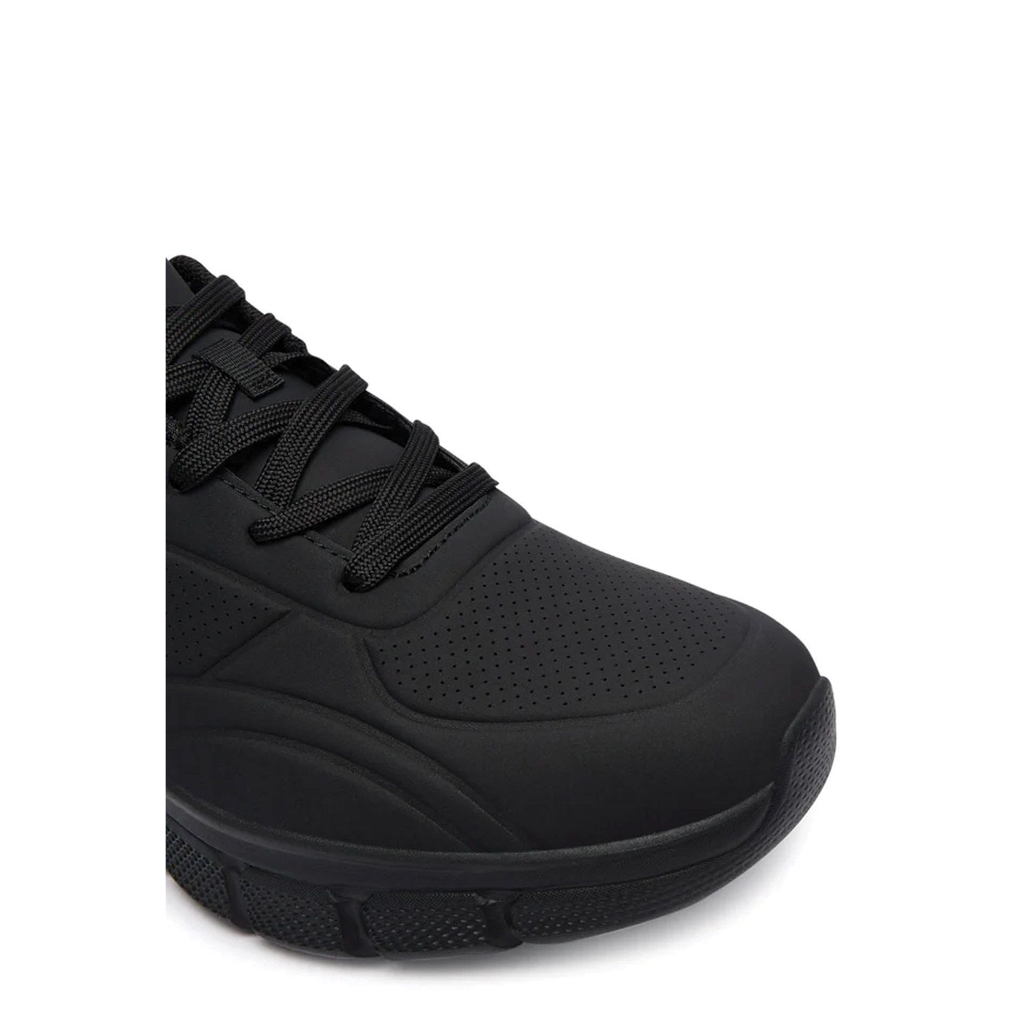 Skechers ανδρικό sneaker, σε μαύρο χρώμα, κατασκευασμένο από οικολογικό δέρμα, με ανατομικό πάτο από memory foam. Ύψος σόλας 3εκ.