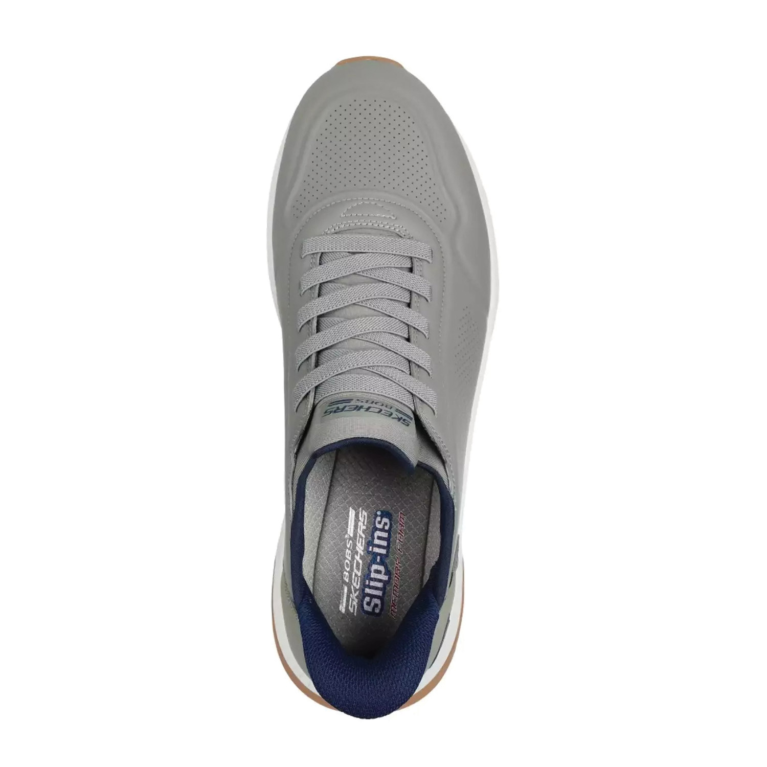 Skechers ανδρικό sneaker, σε λαδί χρώμα, κατασκευασμένο από οικολογικό δέρμα, με ανατομικό πάτο από memory foam. Ύψος τακουνιού 3εκ.