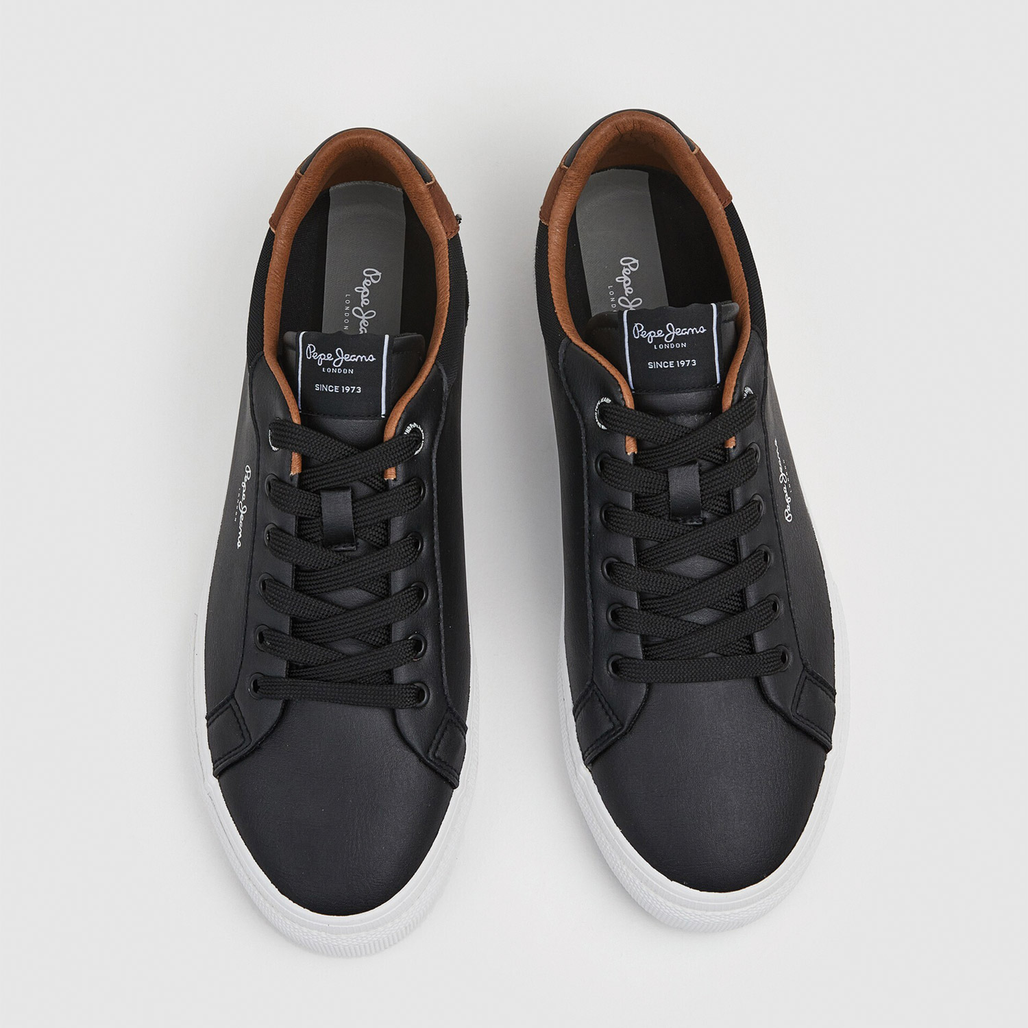 Pepe Jeans ανδρικό sneaker σε μαύρο χρώμα κατασκευασμένο από οικολογικό δέρμα, με ανατομικό πατάκι. Ύψος σόλας 2.5εκ.