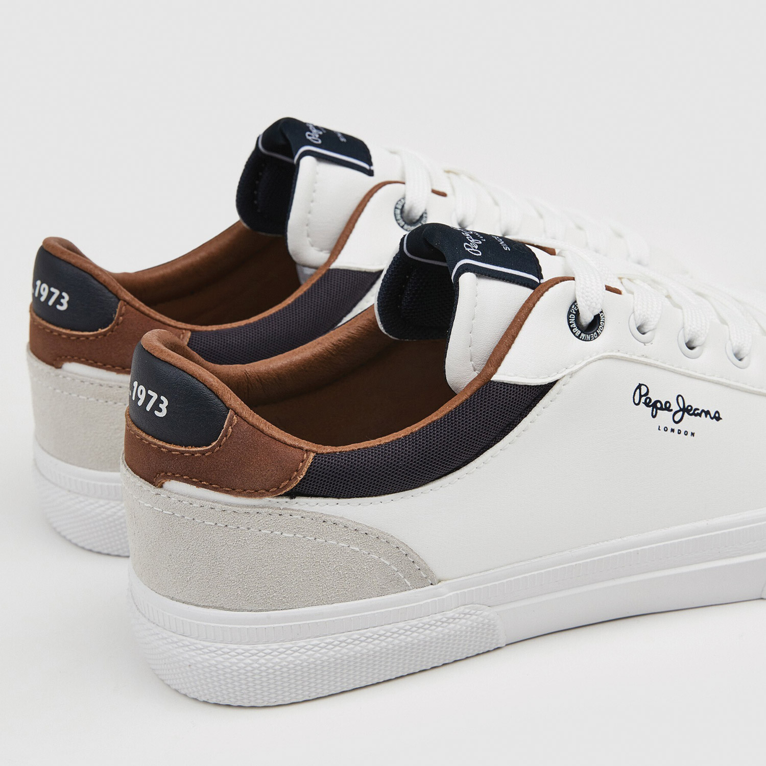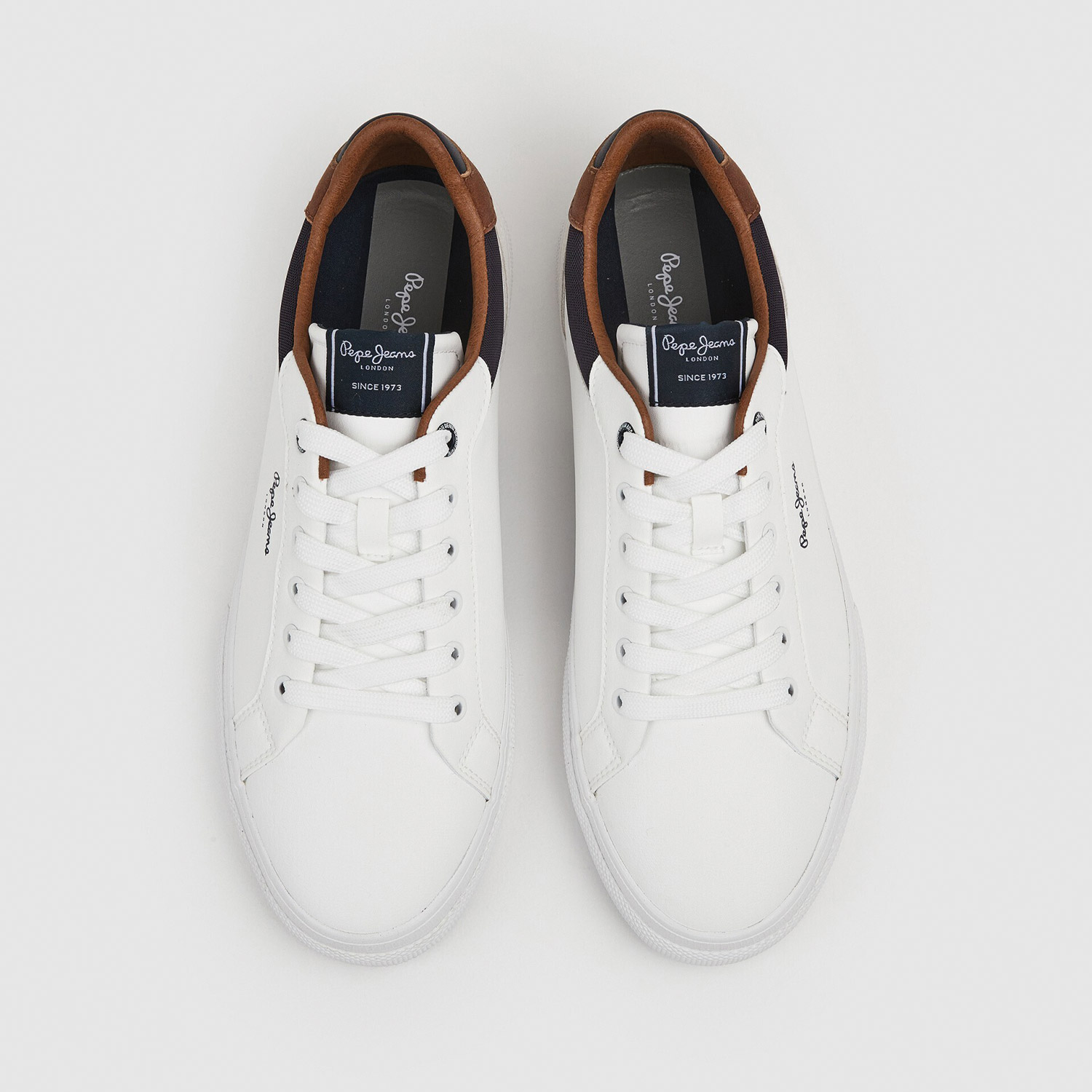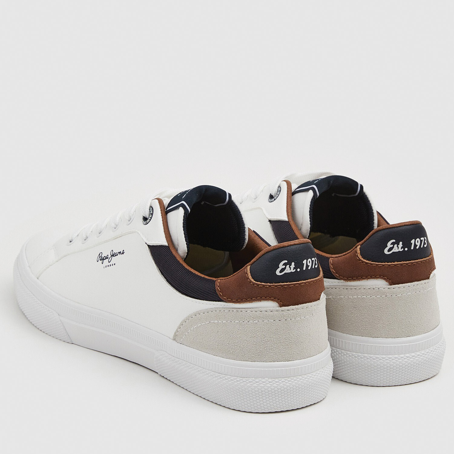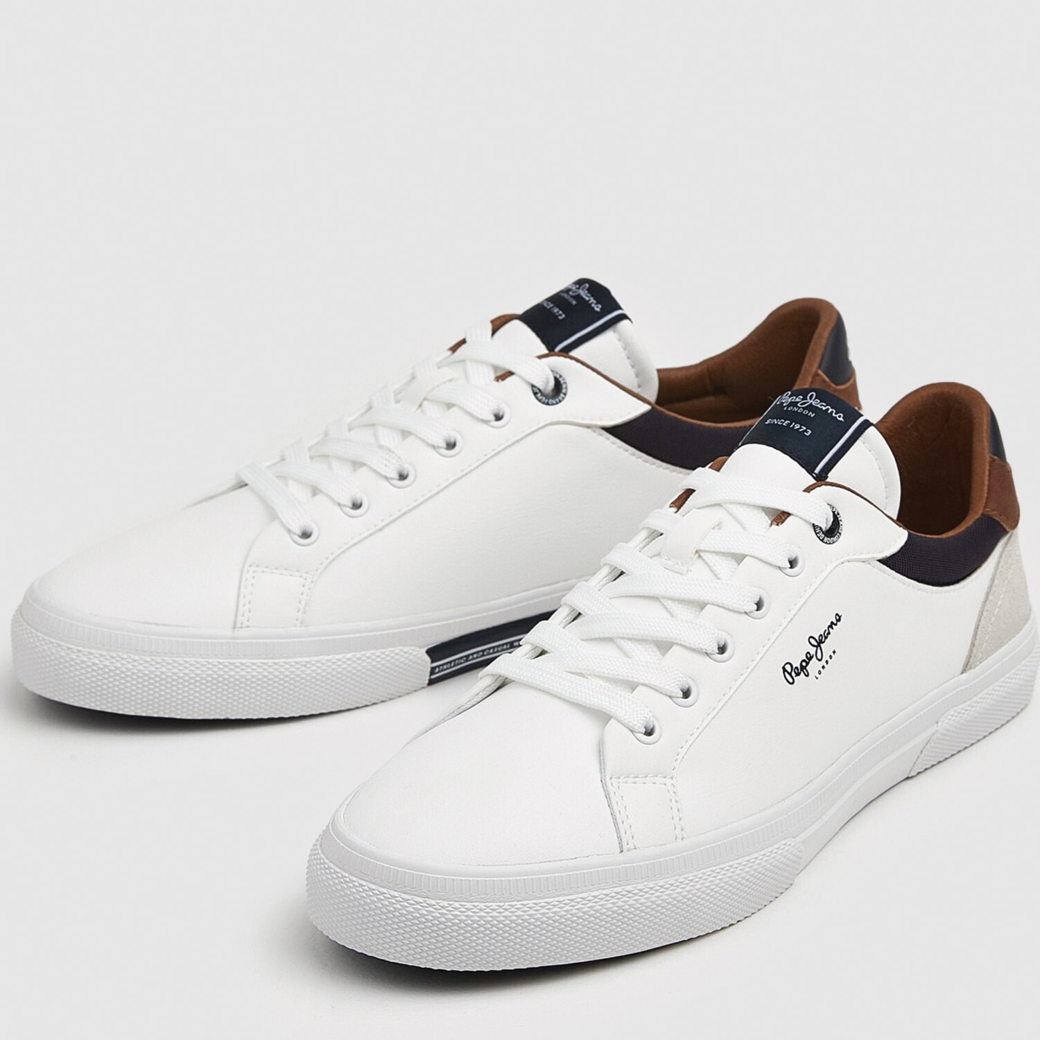 Pepe Jeans ανδρικό sneaker σε λευκό χρώμα κατασκευασμένο από οικολογικό δέρμα, με ανατομικό πατάκι. Ύψος σόλας 2.5εκ.