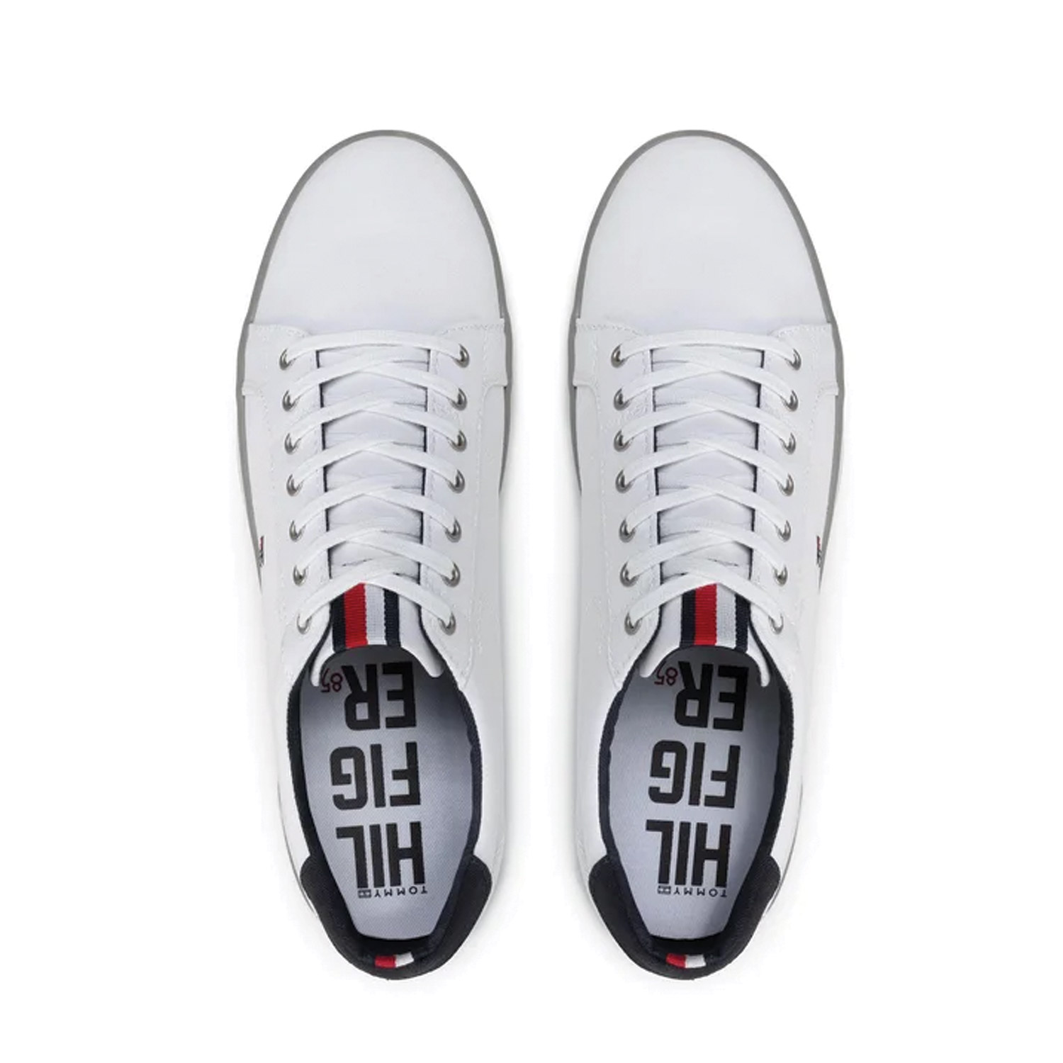 Tommy Hilfiger ανδρικό sneaker, σε λευκό χρώμα, κατασκευασμένο από πανί. Ύψος σόλας 2εκ.