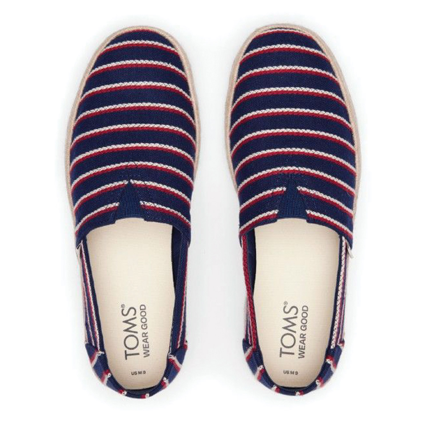 Toms ανδρική εσπαντρίγια, σε μπλε-κόκκινο χρώμα, κατασκευασμένη από ύφασμα. Ύψος σόλας 2εκ.