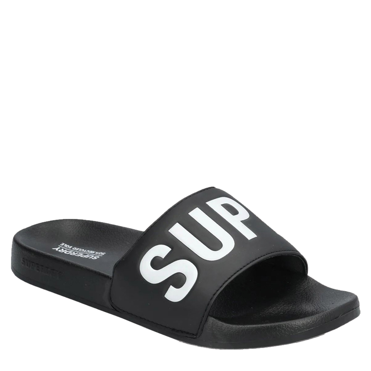 Superdry ανδρικά slides, σε μαύρο χρώμα, κατασκευασμένο από οικολογικό δέρμα. Ύψος σόλας 2εκ.