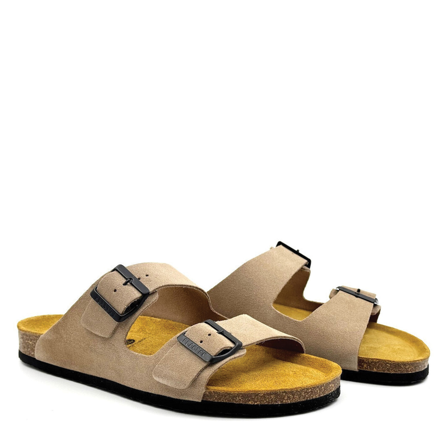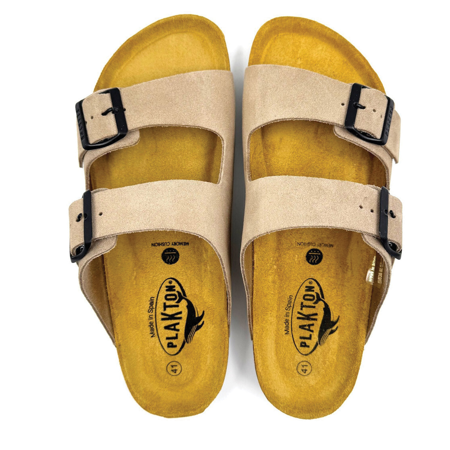 Plakton ανδρικά σανδάλια σε μπεζ χρώμα κατασκευασμένα από δέρμα με ανατομικό πατάκι. Ύψος σόλας 2εκ.