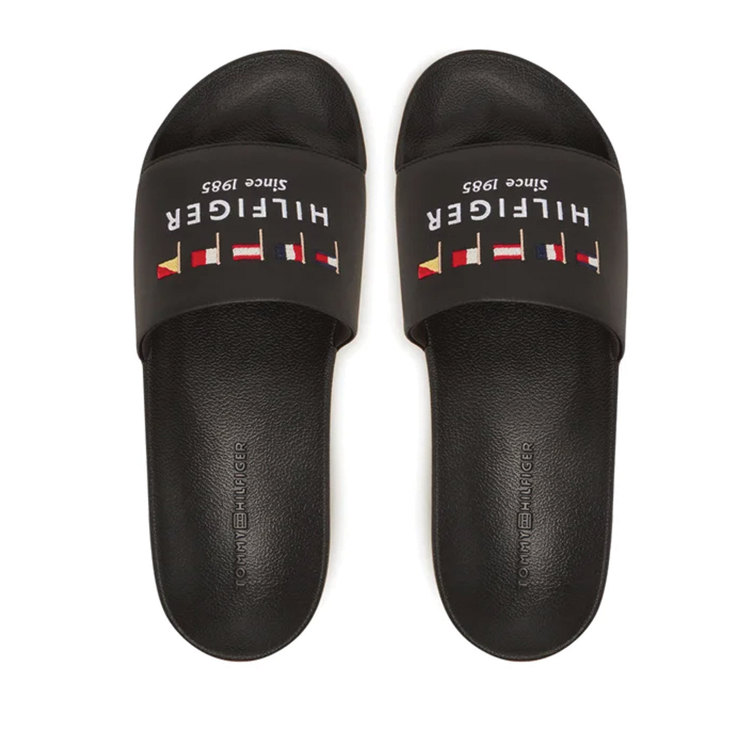 Tommy Hilfiger ανδρικό slide, σε μαύρο χρώμα, κατασκευασμένο από οικολογικό δέρμα. Ύψος σόλας 2εκ.