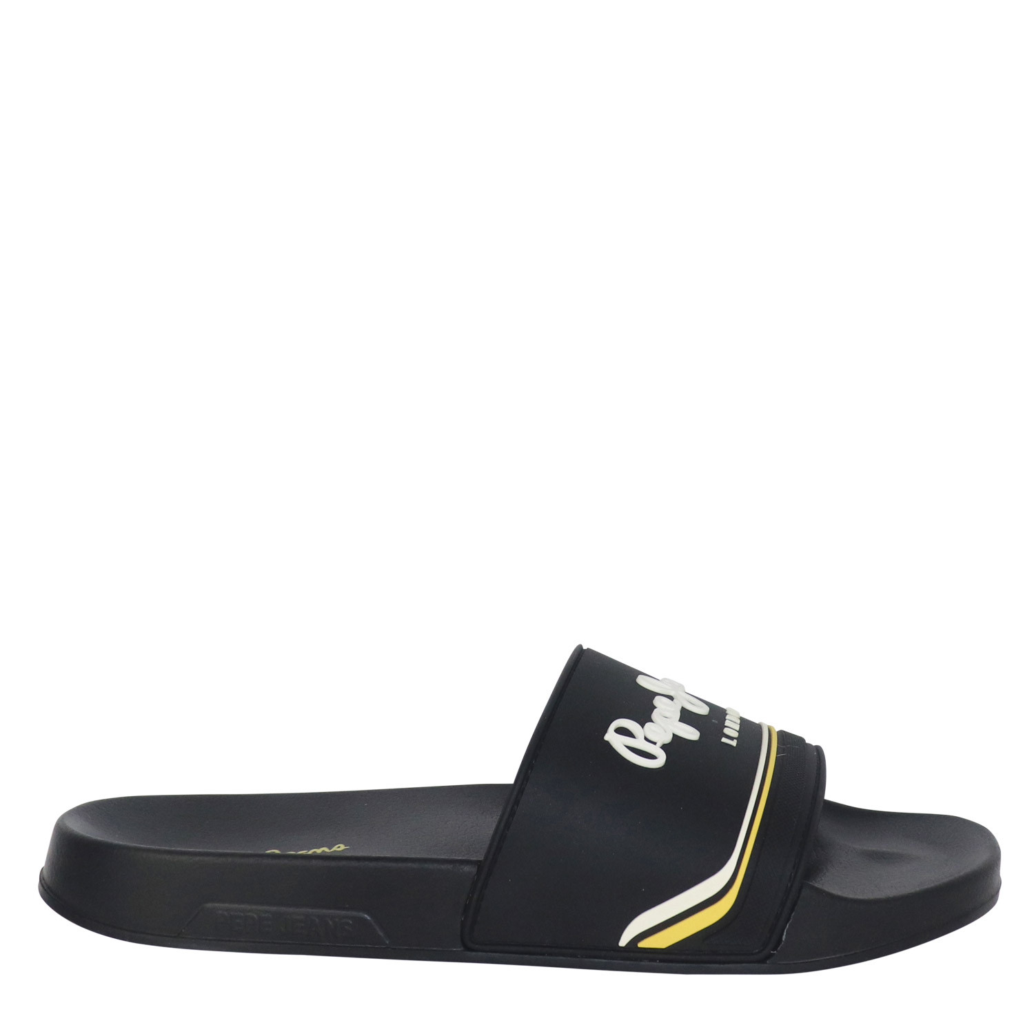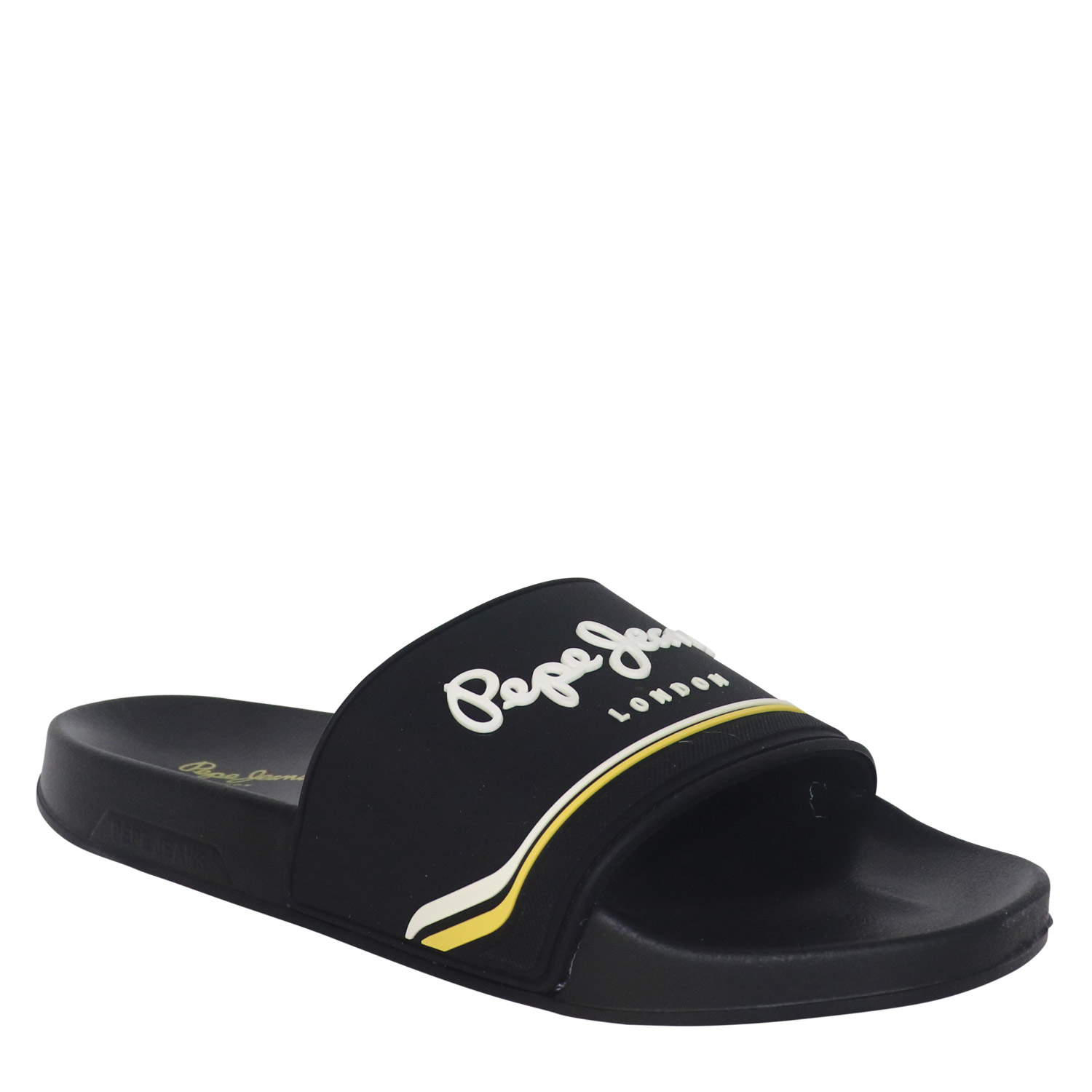 Pepe Jeans ανδρικό slide, σε μαύρο χρώμα, κατασκευασμένο από οικολογικό δέρμα. Ύψος σόλας 2εκ.