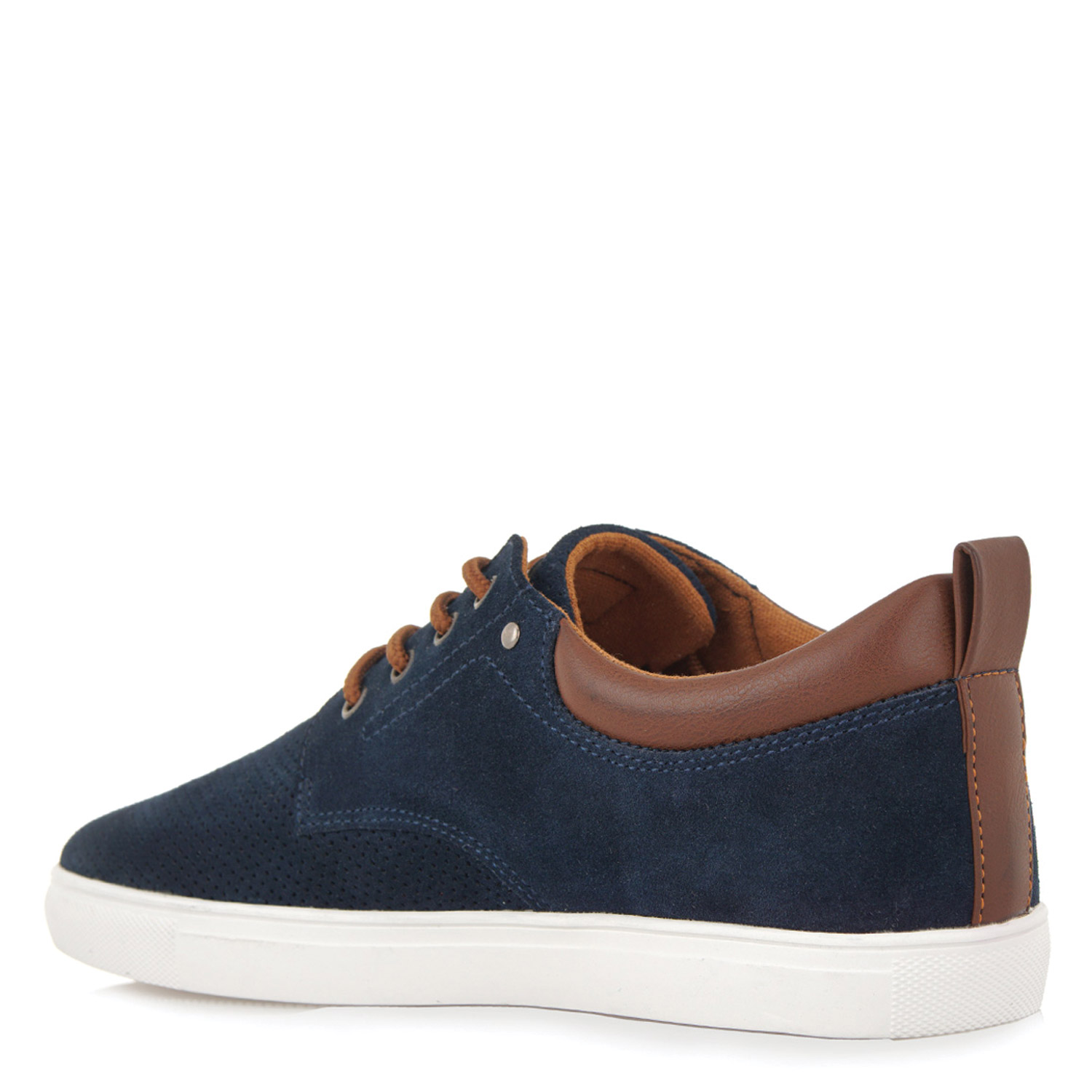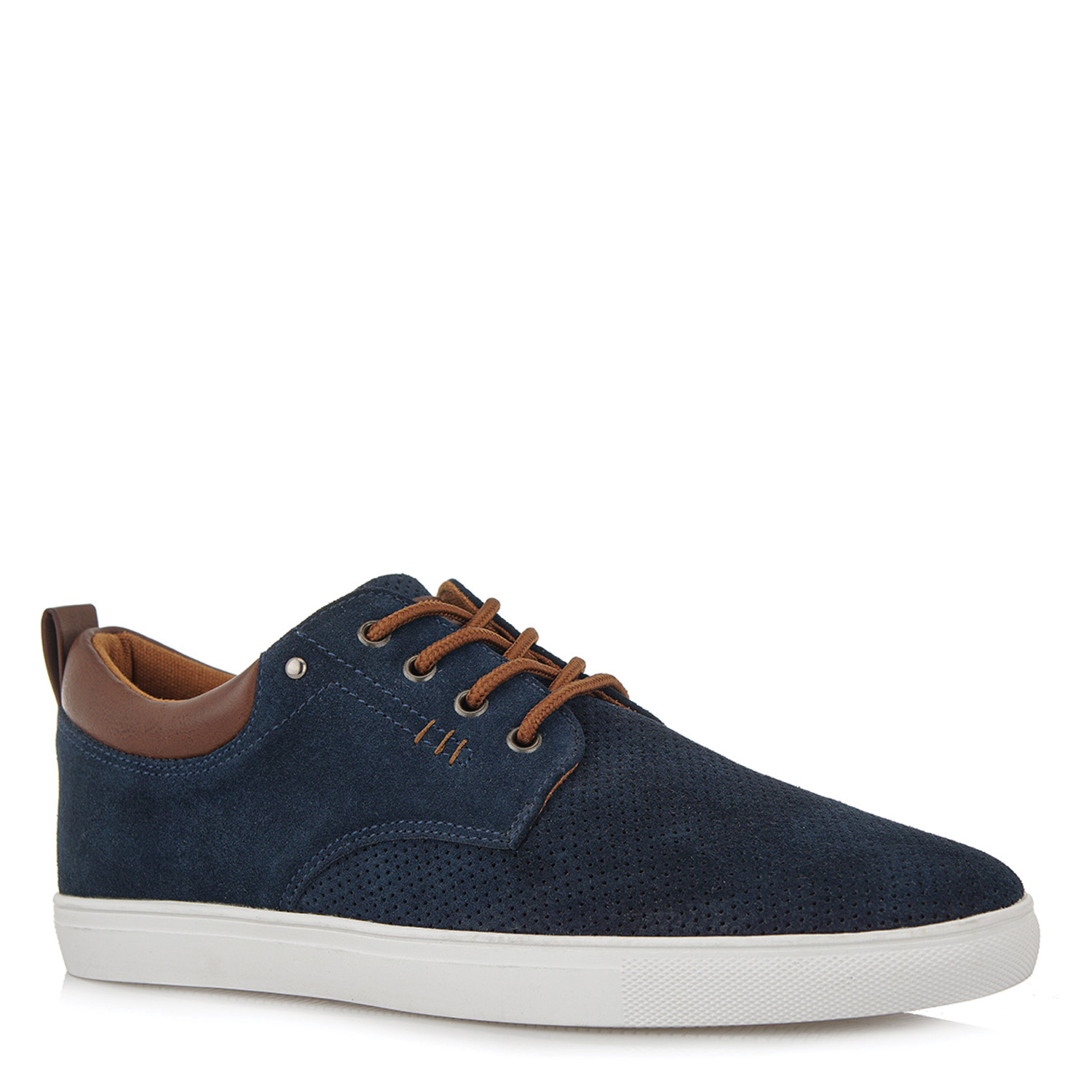 Renato Garini ανδρικό casual, σε μπλε χρώμα, κατασκευασμένο από δέρμα καστόρι. Ύψος σόλας 2εκ.