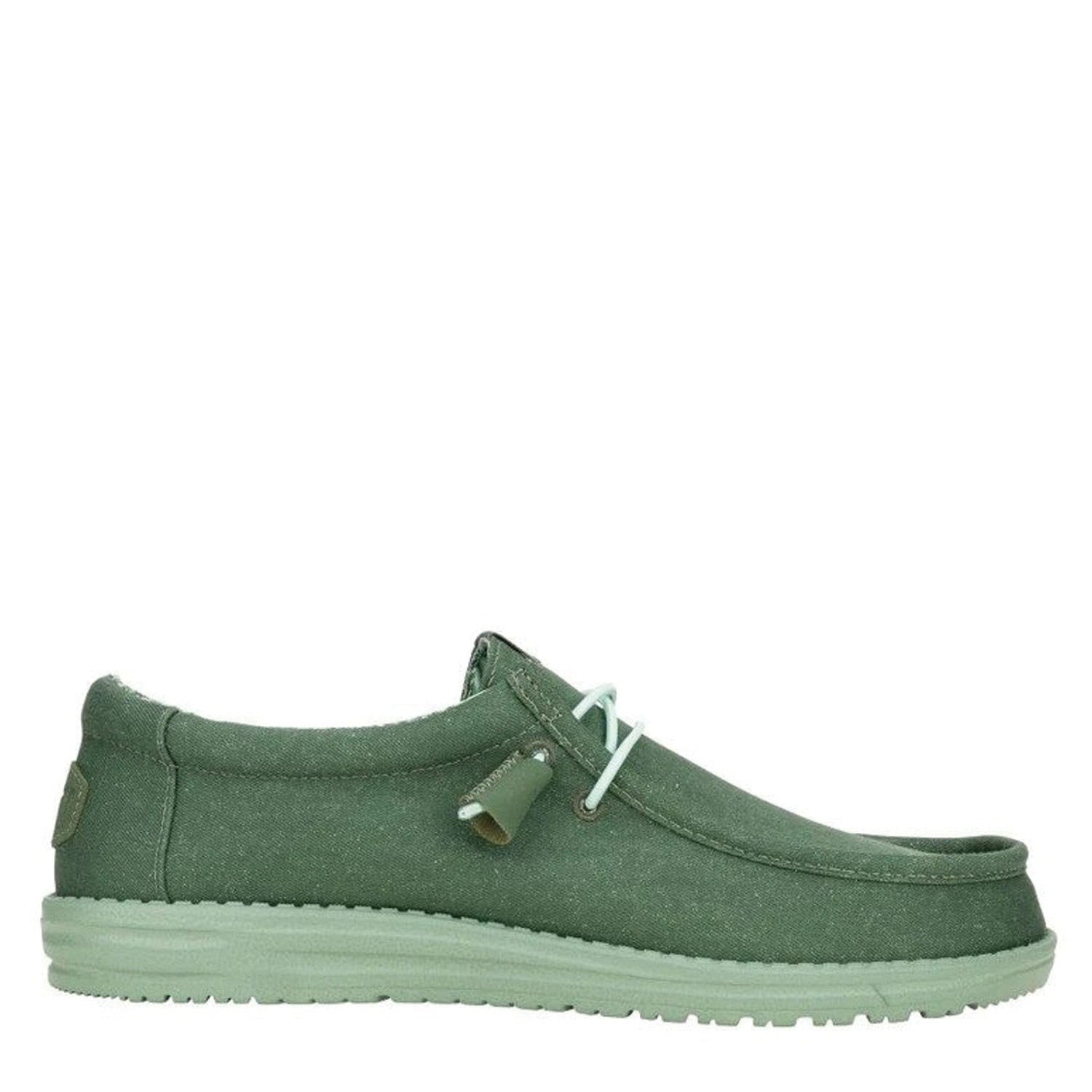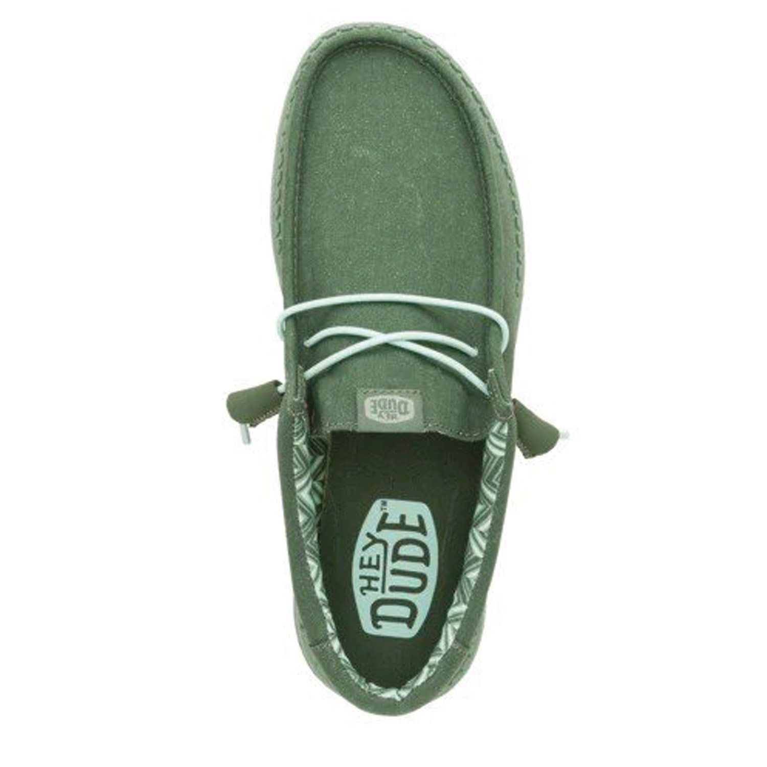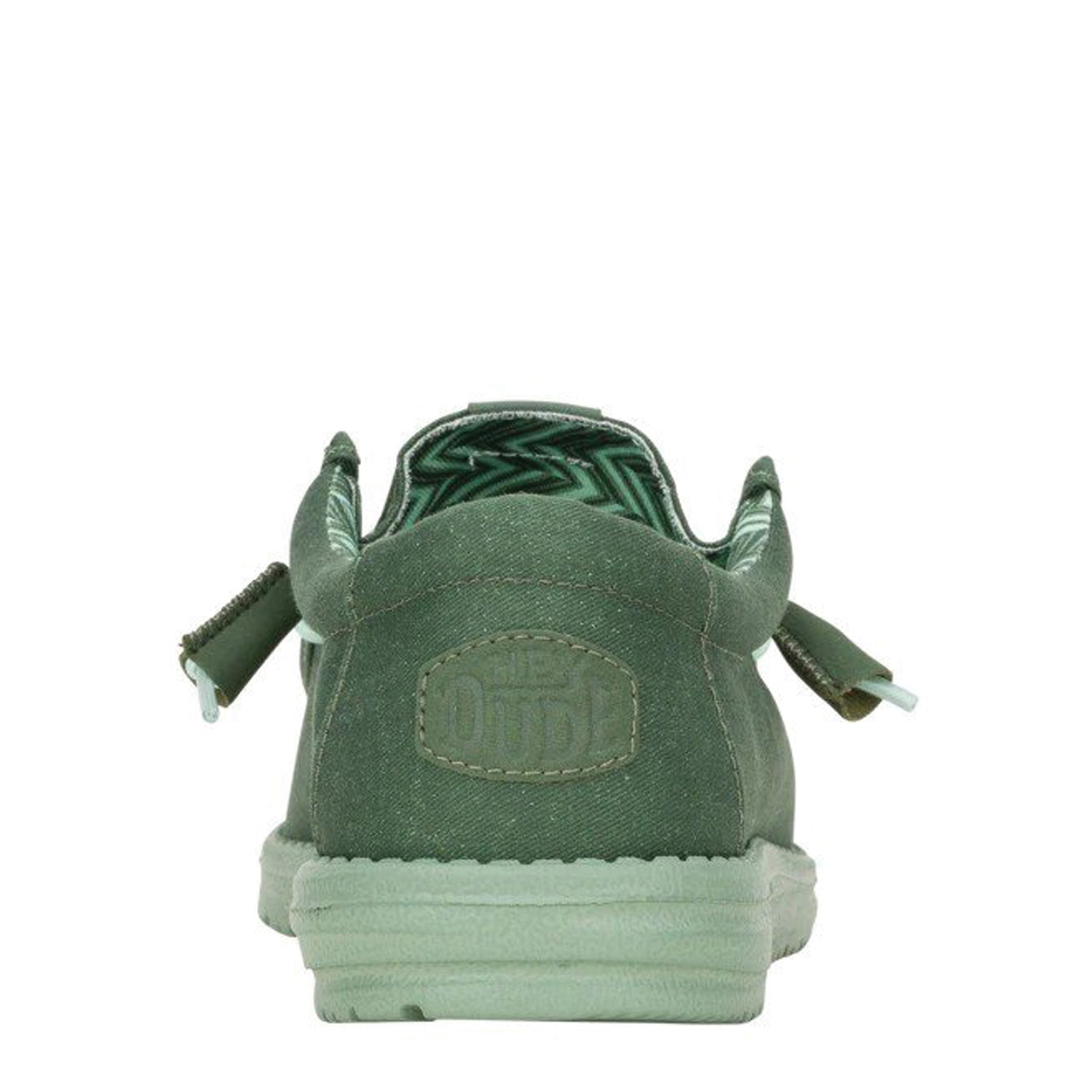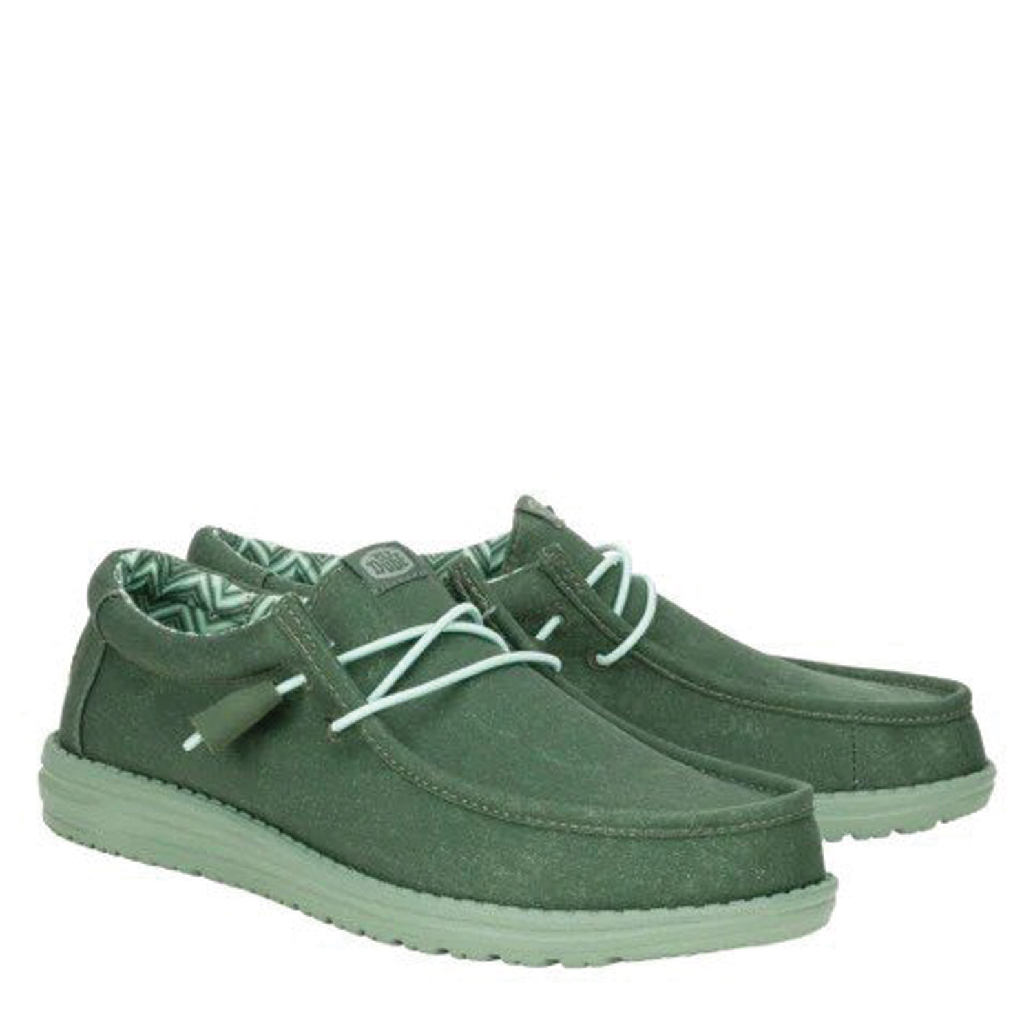 Hey Dude ανδρικό casual, σε πράσινο χρώμα, κατασκευασμένο από ύφασμα με ανατομικό, δερμάτινο πάτο. Ύψος σόλας 2εκ.