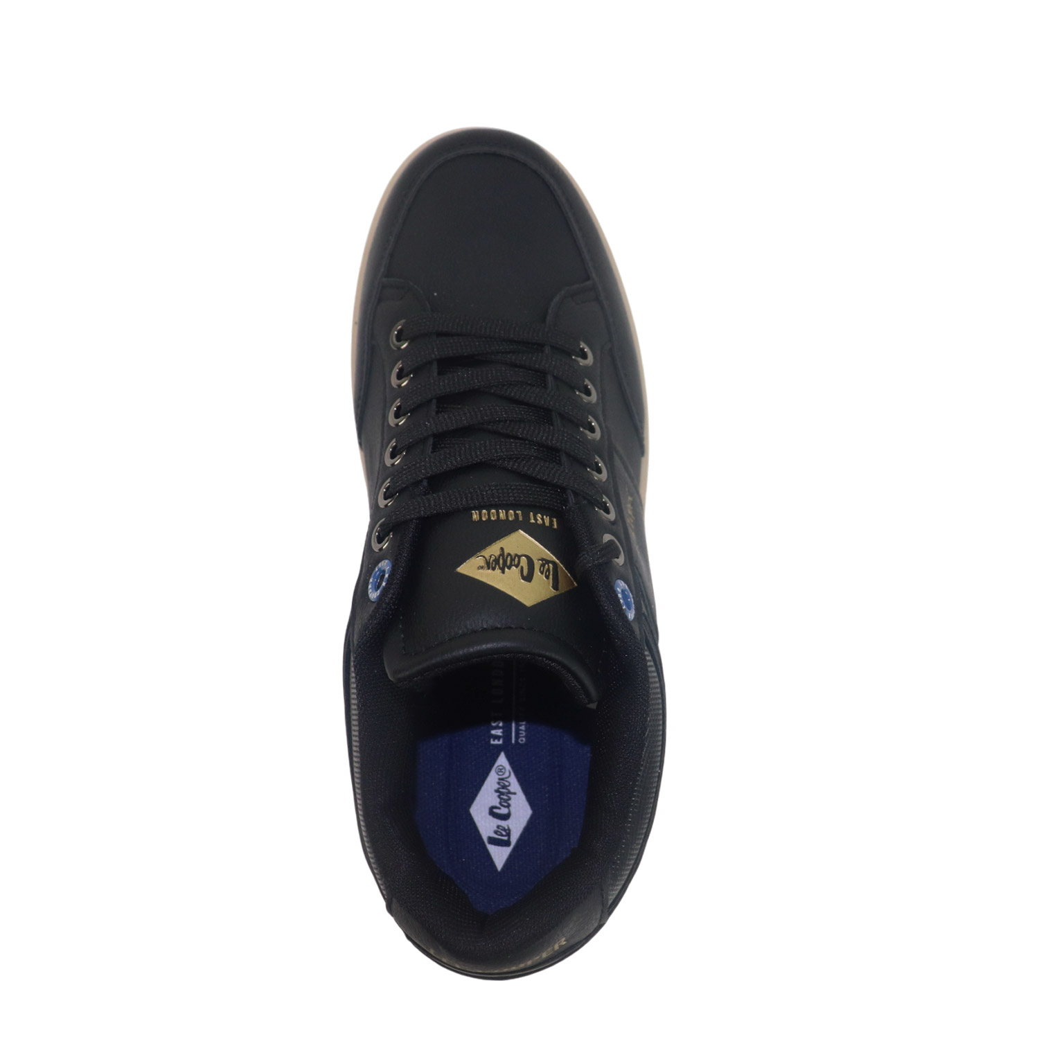 Lee Cooper ανδρικό casual, σε μαύρο χρώμα, κατασκευασμένο από οικολογικό δέρμα. Ύψος σόλας 3εκ.