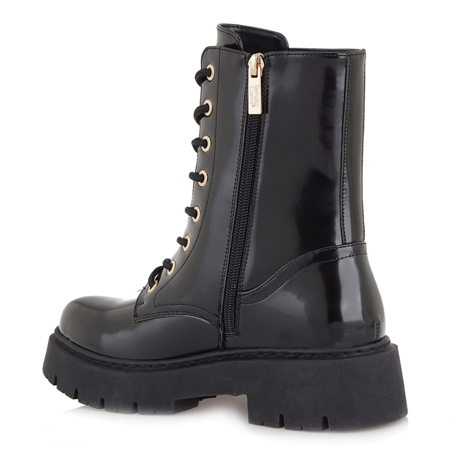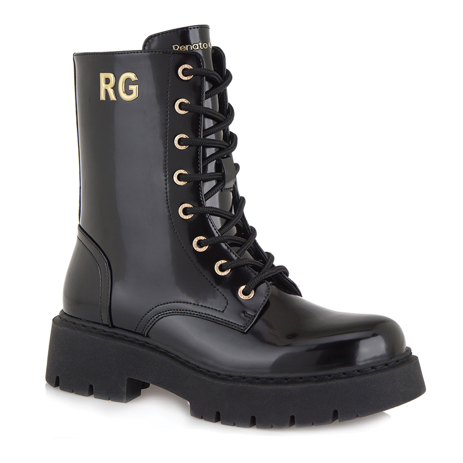 Renato Garini γυναικείο μποτάκι, σε μαύρο φλορεντίκ χρώμα, κατασκευασμένο από οικολογικό δέρμα. Ύψος σόλας 5εκ.