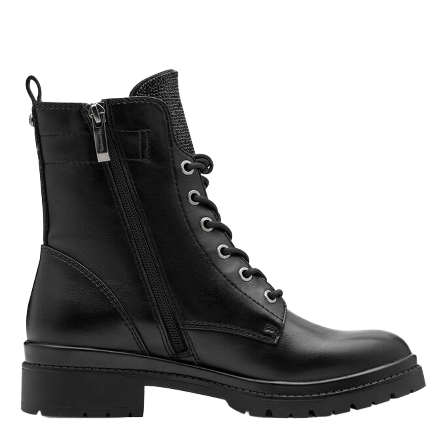 Ανακάλυψε πώς μπορείς να νιώθεις δυνατή και μοναδική κάθε μέρα με αυτό το μαύρο Tamaris lace boot. Η griffige, παχιά σόλα ύψους 4,5εκ. προσφέρει σταθερότητα και άνεση, ενώ το μαλακό πάτημα memory foam αγκαλιάζει τέλεια το πόδι σου. Ο συνδυασμός φερμουάρ και κορδονιών κάνει κάθε εμφάνιση απλή και κομψή — ιδανικό για βόλτες στη βροχή και stylish urban στιγμές.