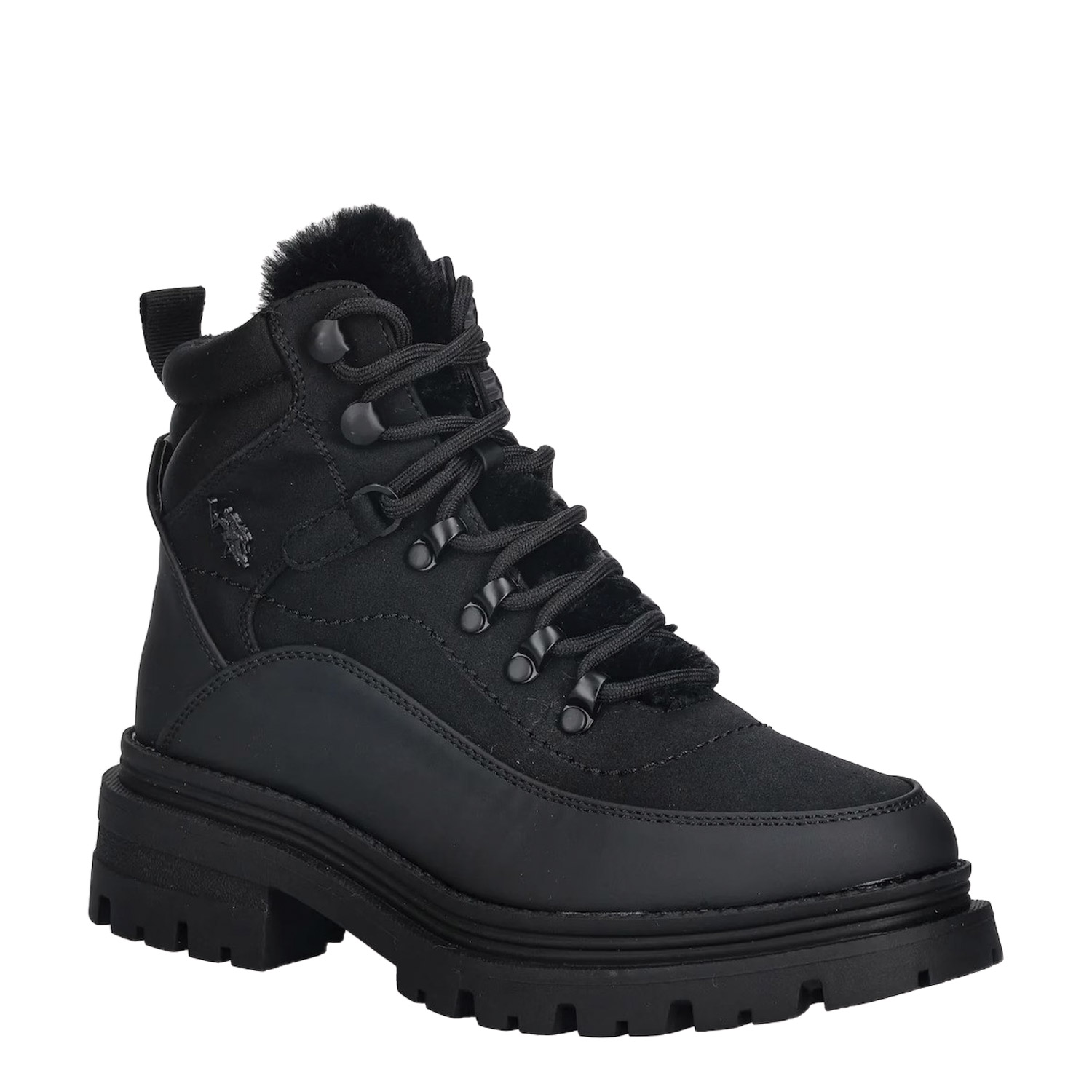 U.S. Polo ASSN γυναικείο αρβυλάκι, σε μαύρο χρώμα, κατασκευασμένο από οικολογικό δέρμα. Ύψος τακουνιού 4εκ.