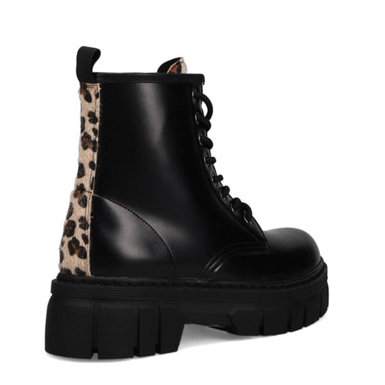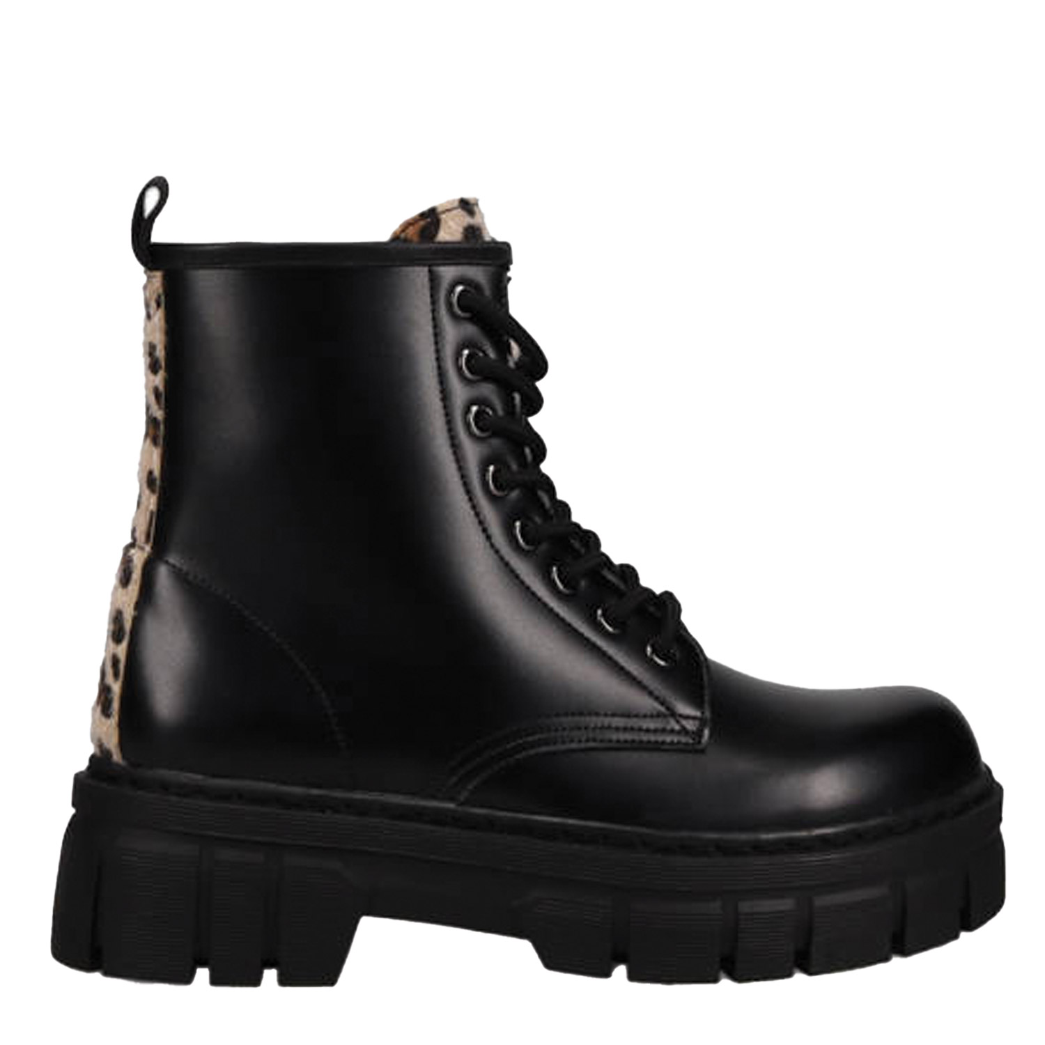 Μαύρο αρβυλάκι με animal print λεπτομέρειες στο πίσω μέρος και στην γλώσσα. Διαθέτει κορδόνια και χοντρή σόλα. Κλείνει με πλαϊνό φερμουάρ για εύκολη εφαρμογή.