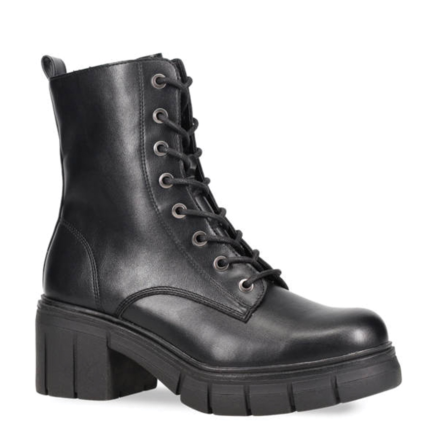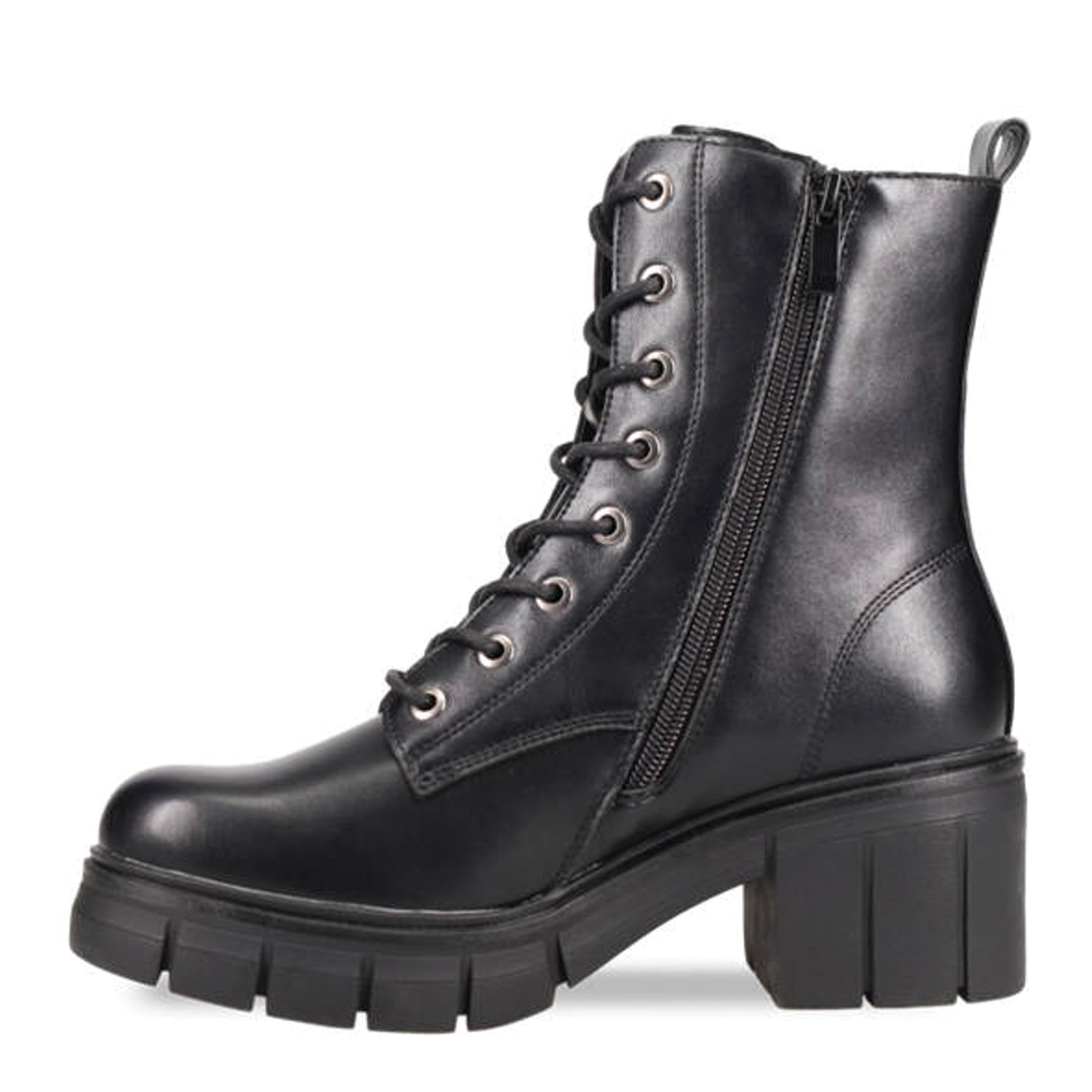 Μαύρο αρβυλάκι μέχρι πάνω από τον αστράγαλο. Διαθέτει τρακτερωτή σόλα και μεσαίο χοντρό τακούνι. Δένει με κορδόνια και φερμουάρ για πιο εύκολη και άνετη εφαρμογή.