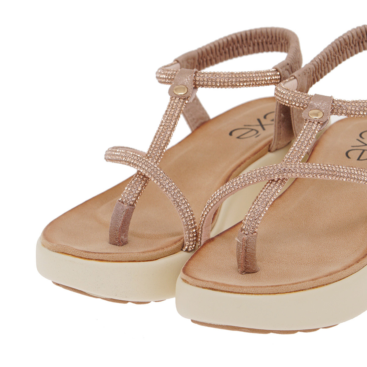 Exe γυναικείο flatform σε nude μεταλλικό χρώμα κατασκευασμένο από ύφασμα με στρας. Ύψος σόλας 4.5εκ.