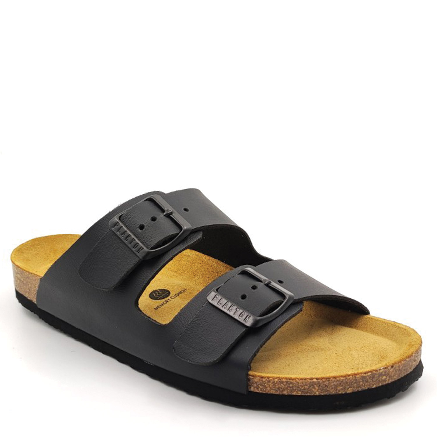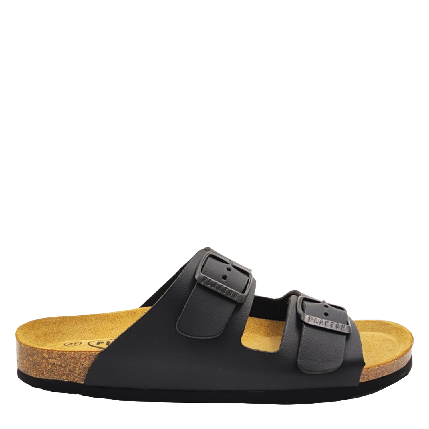 Plakton γυναικείο σανδάλι σε μαύρο χρώμα, κατασκευασμένο από δέρμα με ανατομικό πάτο. Ύψος σόλας 2εκ.