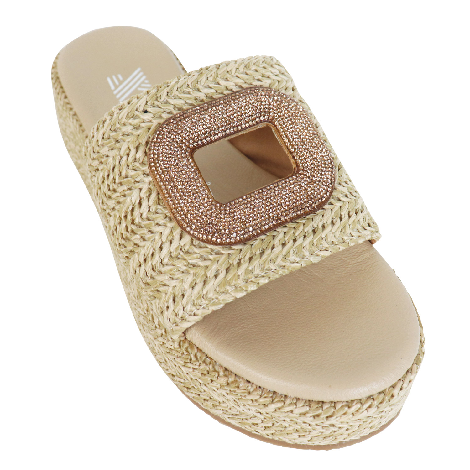 Koniarisshoes γυναικείο flatform, σε μπεζ χρώμα, κατασκευασμένο από ψάθα. Ύψος σόλας 4.5εκ.