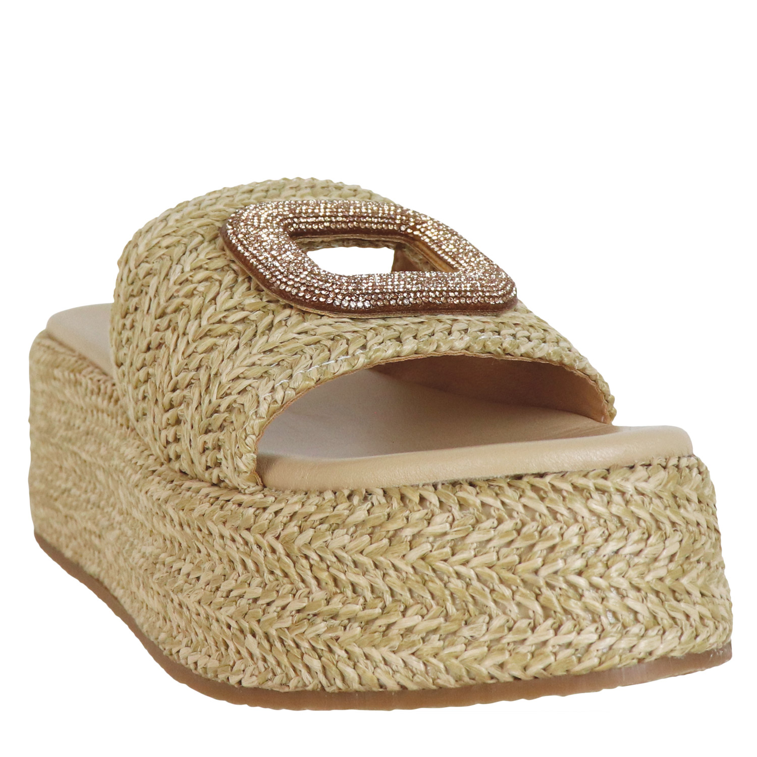 Koniarisshoes γυναικείο flatform, σε μπεζ χρώμα, κατασκευασμένο από ψάθα. Ύψος σόλας 5εκ.