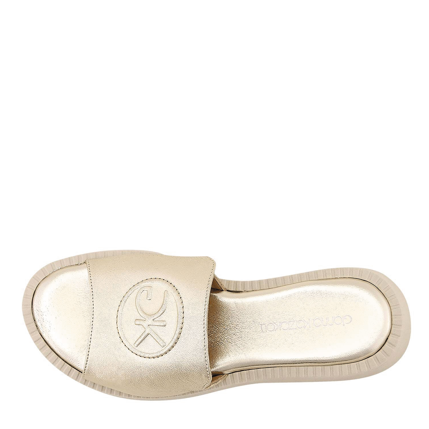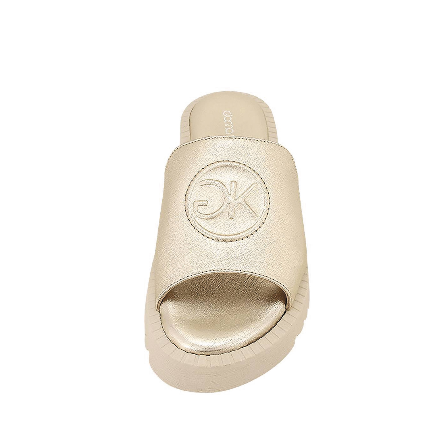 Gianna Kazakou γυναικείο flatform, σε χρυσό χρώμα, κατασκευασμένο από οικολογικό δέρμα.Ύψος τακουνιού 4.5εκ.