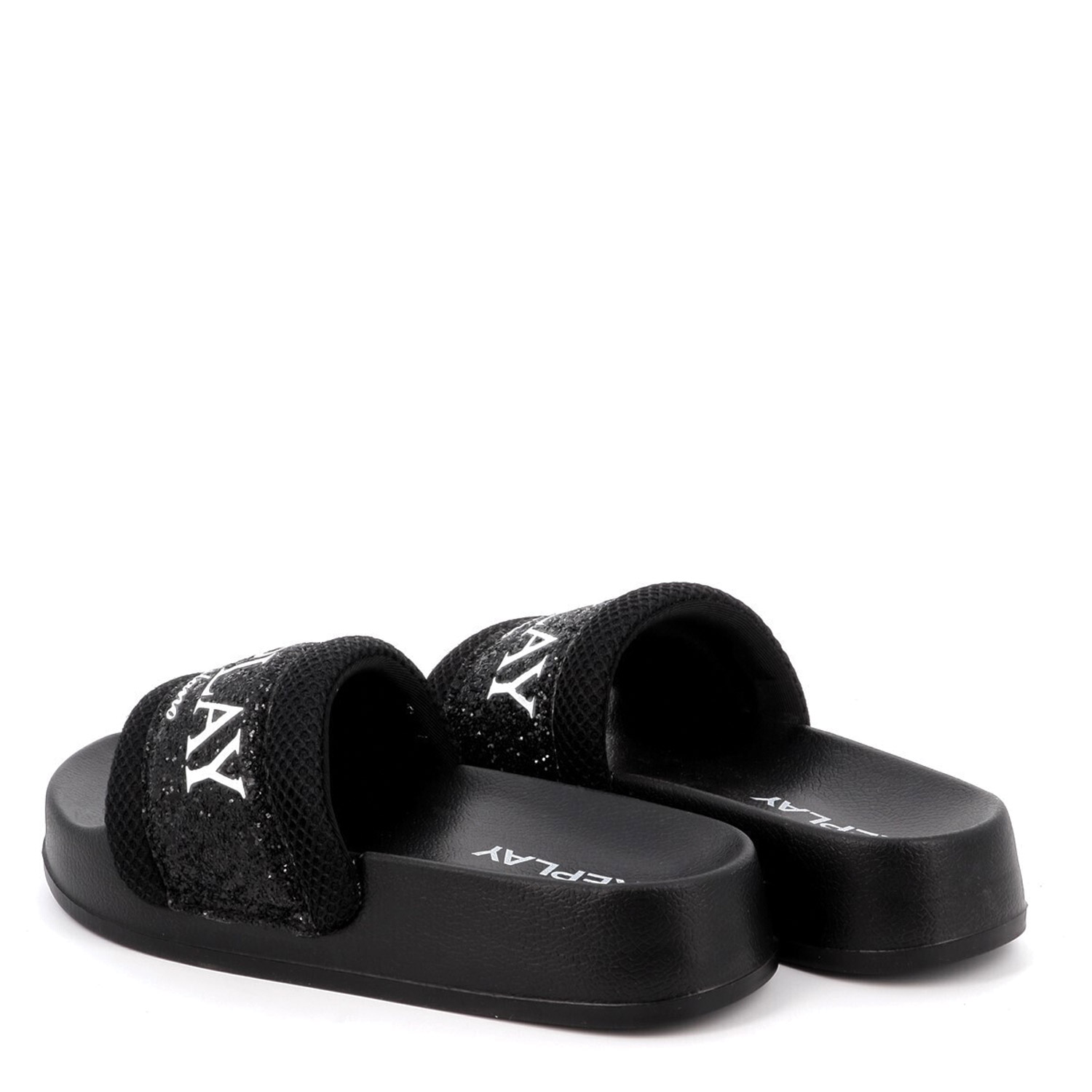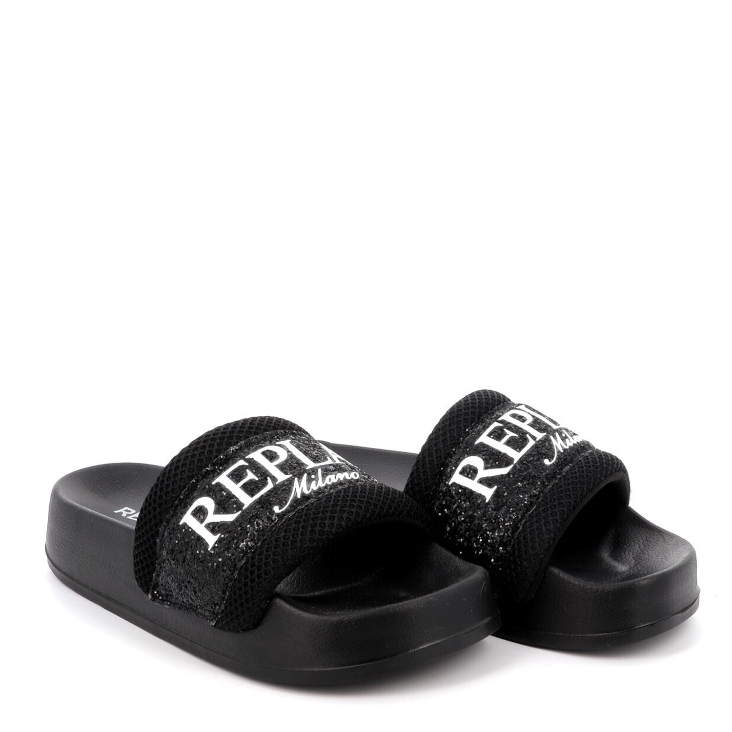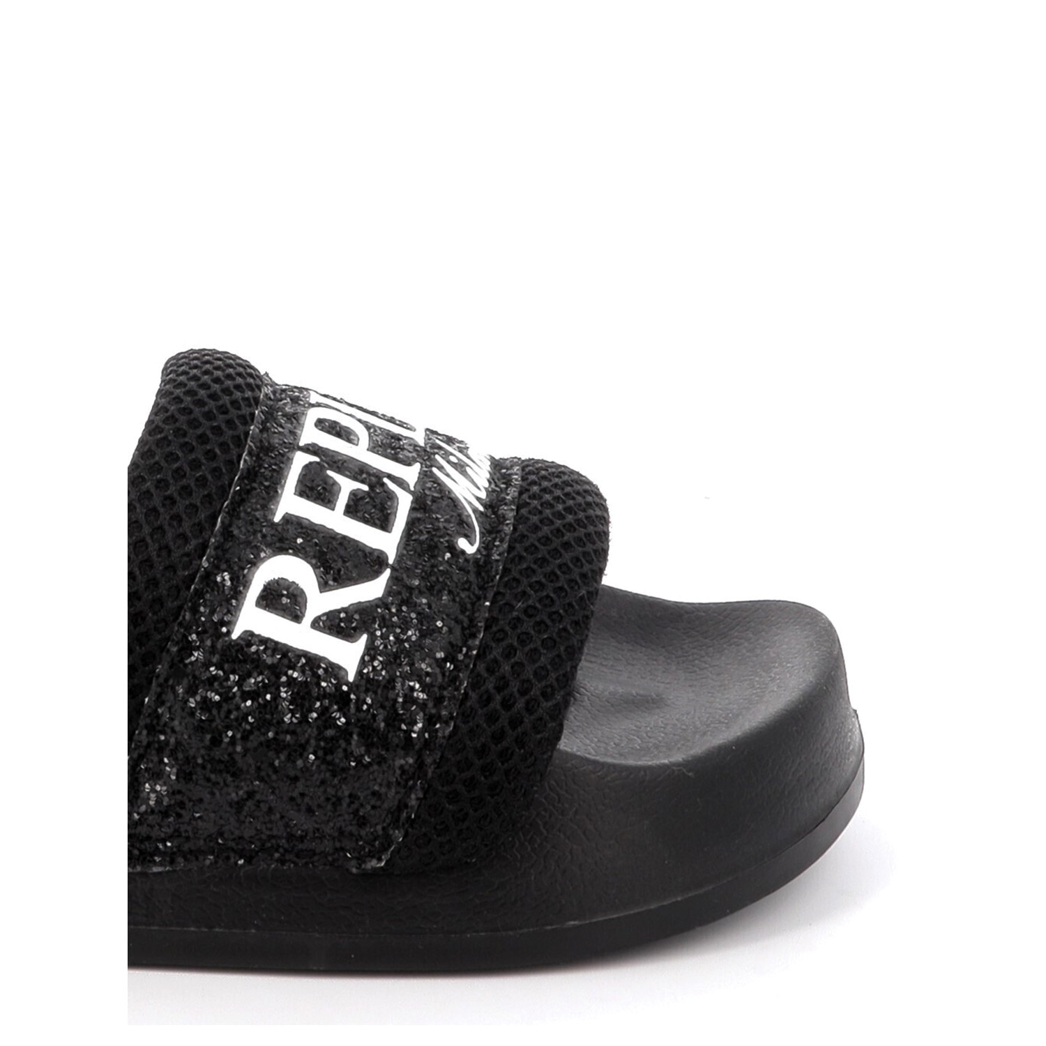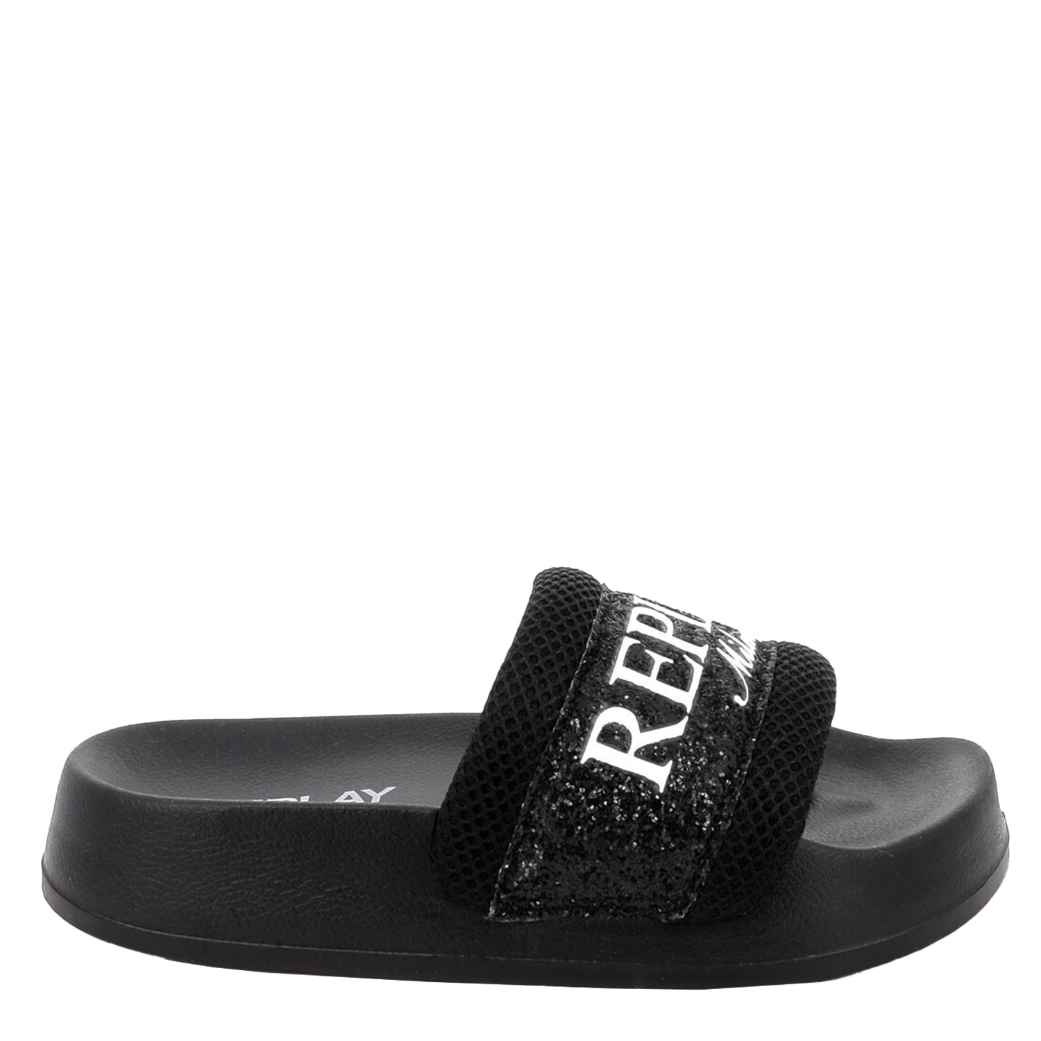 Replay γυναικεία παντόφλα, σε μαύρο χρώμα, κατασκευασμένη από ύφασμα με glitter. Ύψος σόλας 4 εκ.