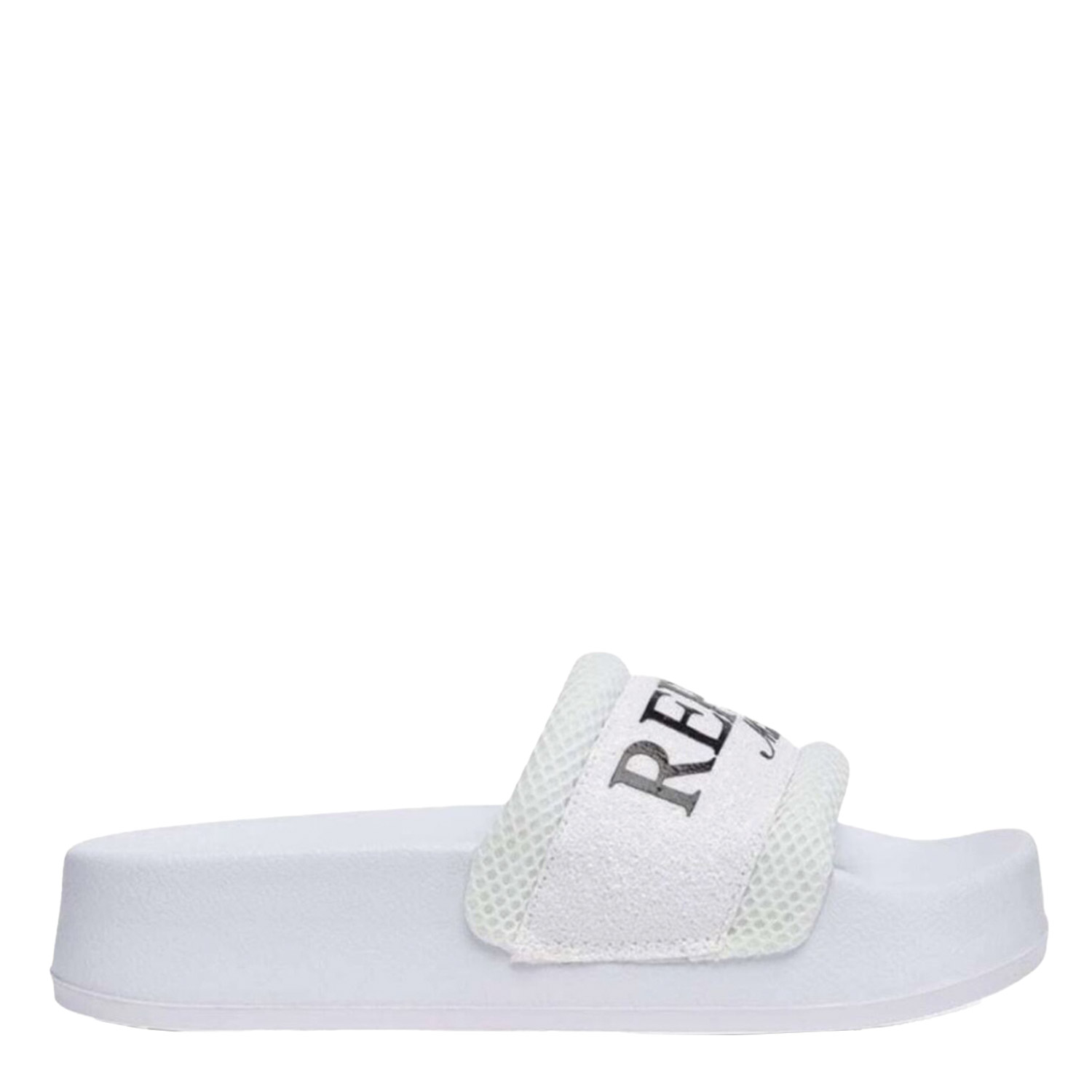 Replay γυναικεία παντόφλα, σε λευκό χρώμα, κατασκευασμένη από ύφασμα με glitter. Ύψος σόλας 4 εκ.