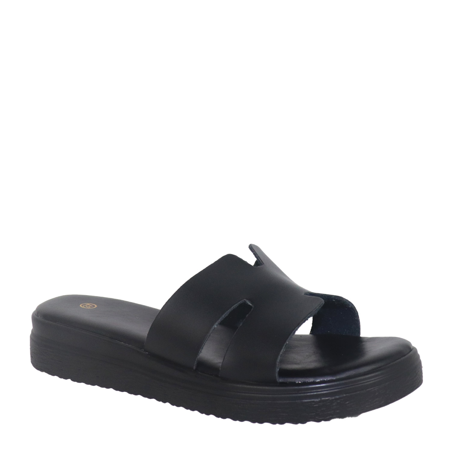 Koniarisshoes γυναικείο flatform, σε μαύρο χρώμα, κατασκευασμένο από οικολογικό δέρμα. Ύψος τακουνιού 3εκ.