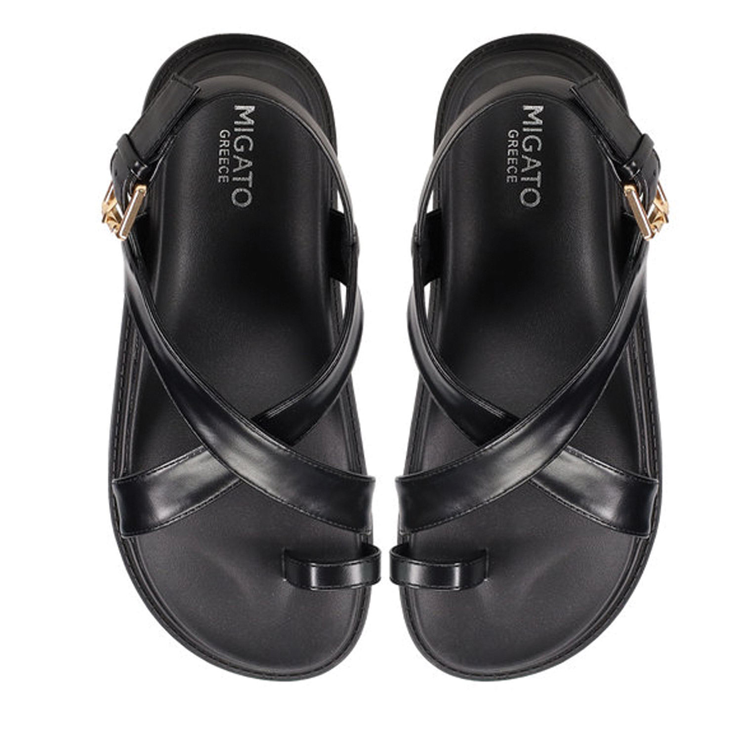 Migato γυναικείο σανδάλι σε μαύρο χρώμα κατασκευασμένο από οικολογικό δέρμα. Ύψος σόλας 3εκ.