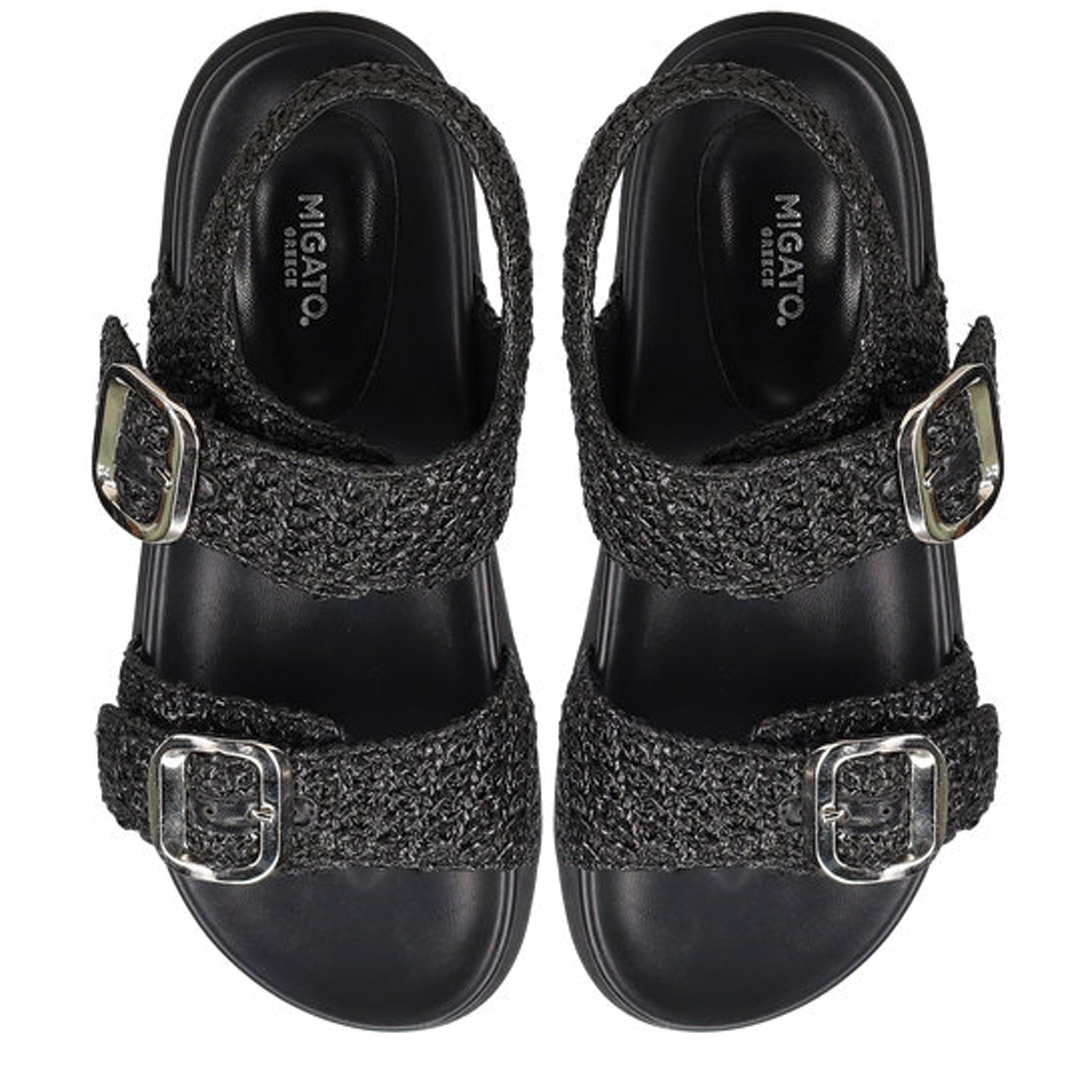 Migato γυναικείο flatform σε μαύρο χρώμα κατασκευασμένο από οικολογικό δέρμα. Ύψος σόλας 3.5εκ.