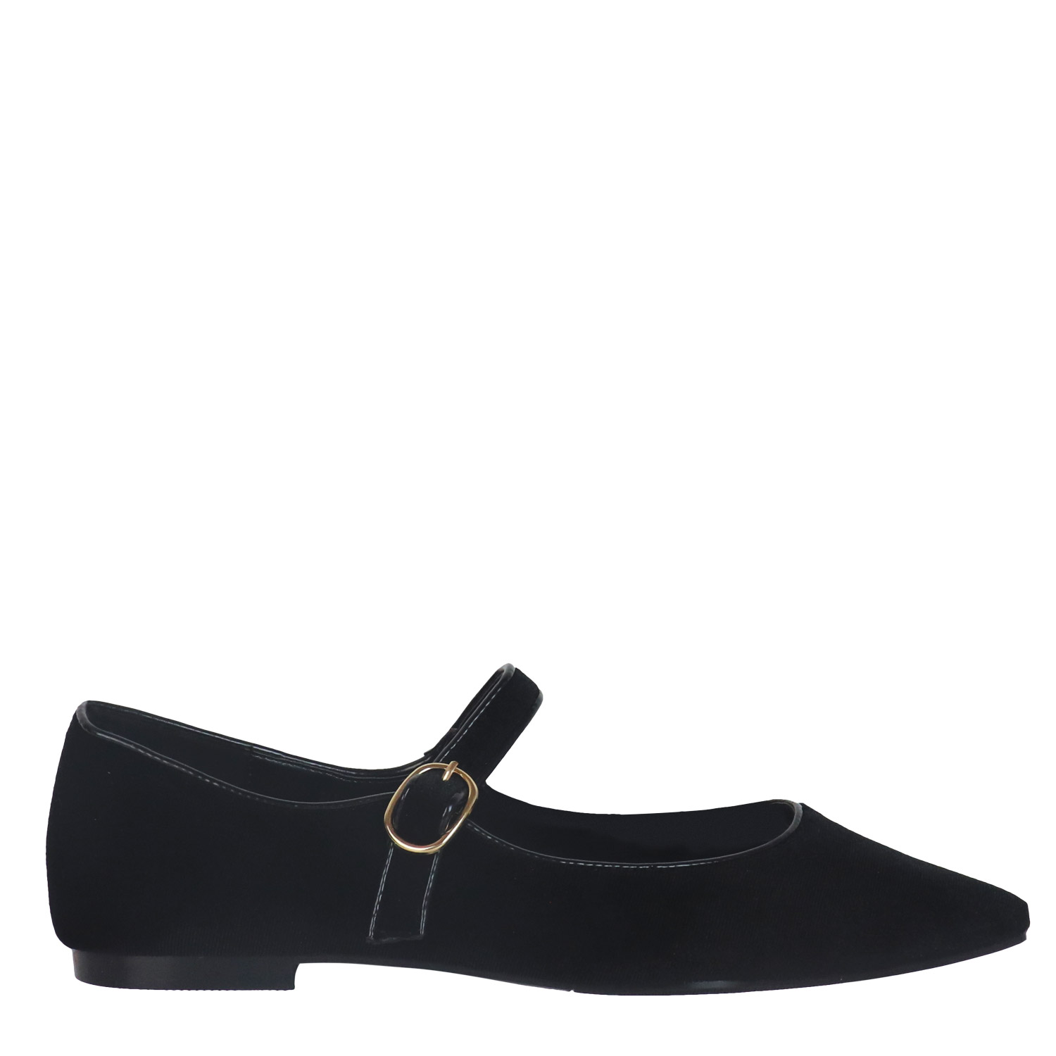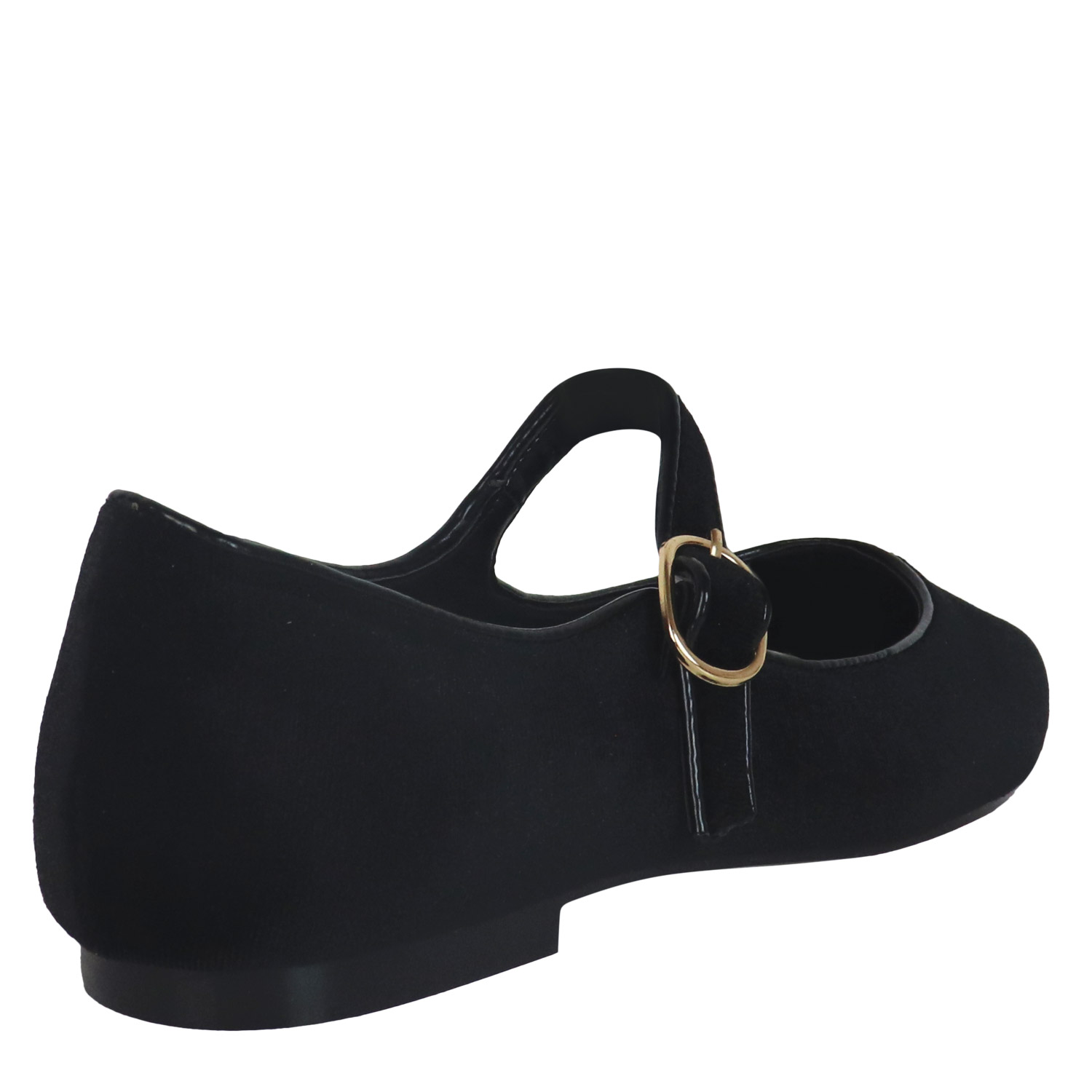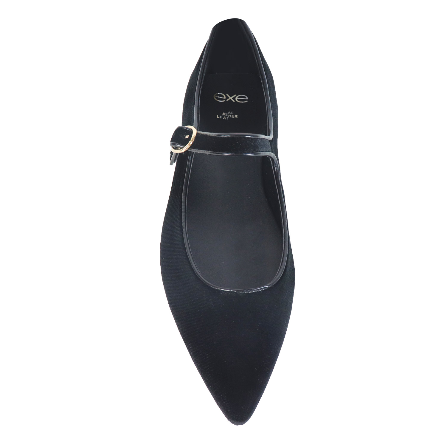 Exe γυναικεία μπαλαρίνα, σε μαύρο χρώμα, κατασκευασμένη από βελούδο.  Ύψος τακουνιού 2εκ.