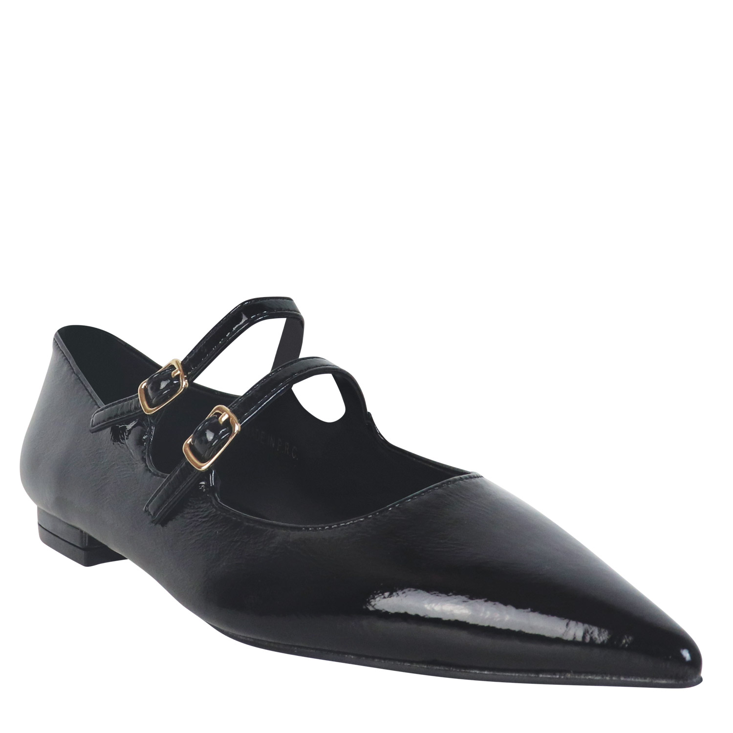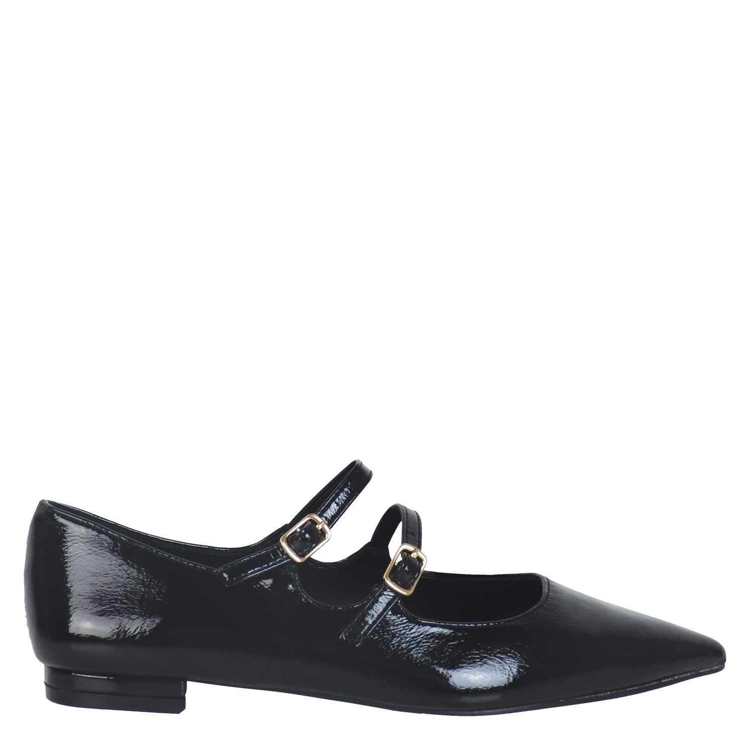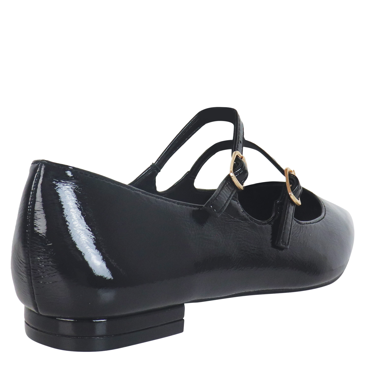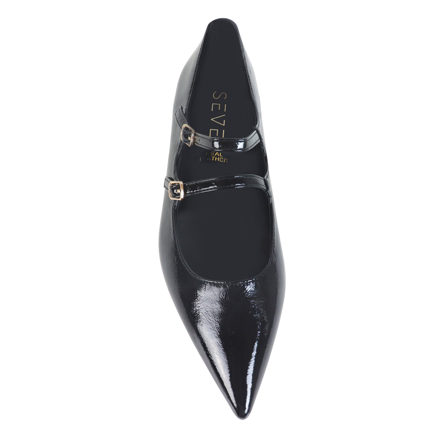 Seven γυναικεία μπαλαρίνα, σε μαύρο χρώμα, κατασκευασμένη από λουστρίνι. Ύψος σόλας 2εκ.