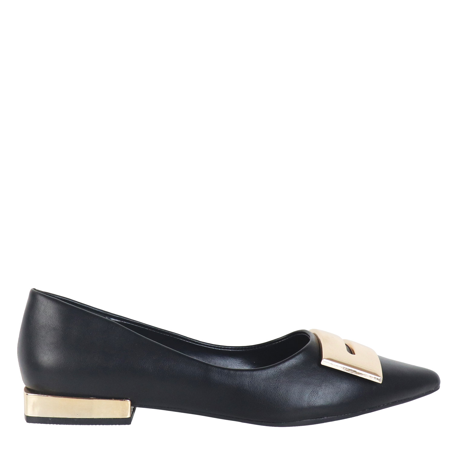 Primadonna γυναικεία μπαλαρίνα, σε μαύρο χρώμα, κατασκευασμένη από οικολογικό δέρμα.  Ύψος τακουνιού 1.5εκ.