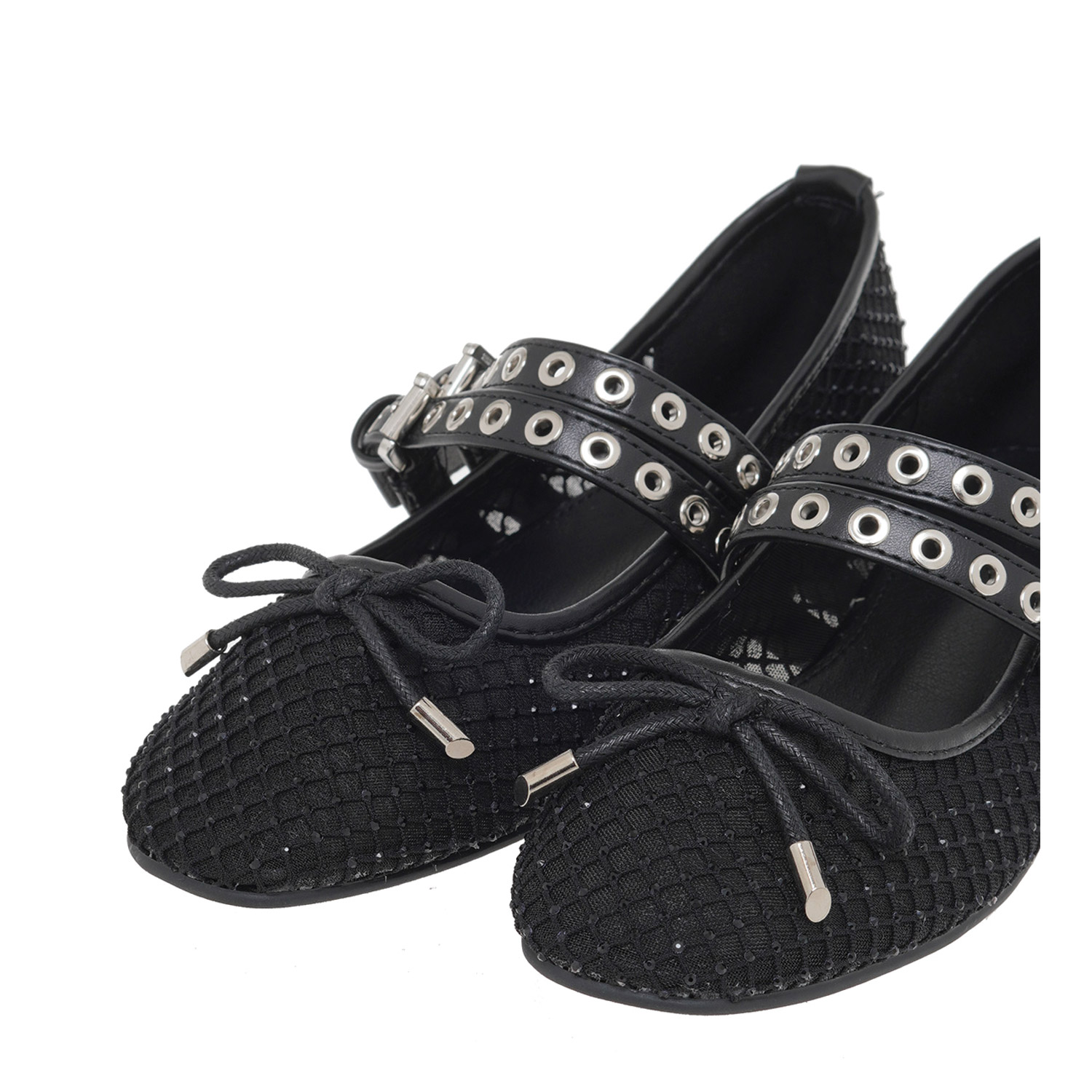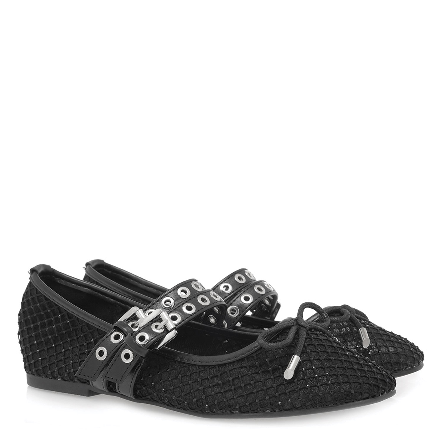 Exe γυναικείο Mary Jane, σε μαύρο χρώμα, κατασκευασμένη από ύφασμα και οικολογικό δέρμα. Ύψος τακουνιού 2.5εκ.